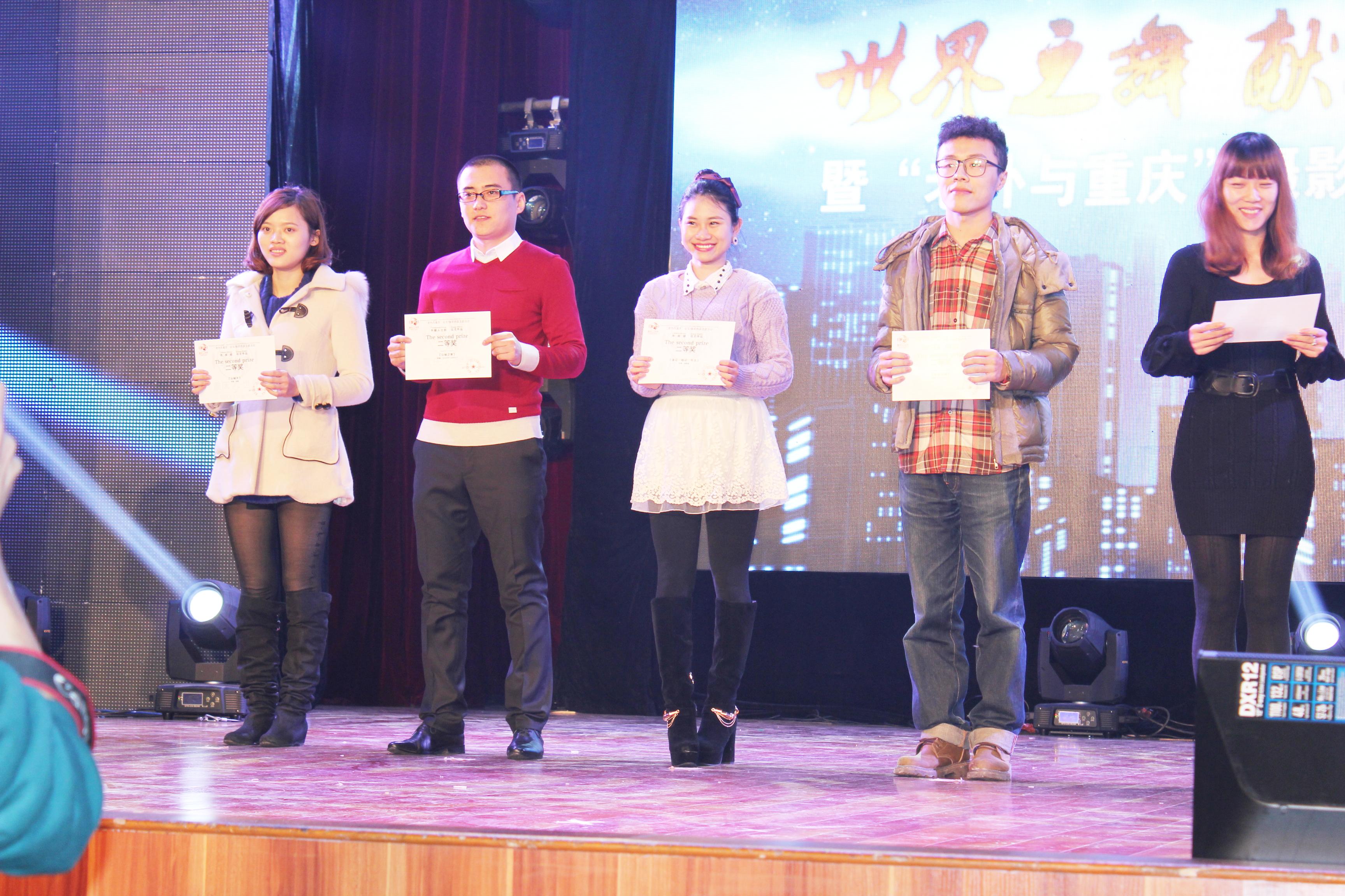 14日晚,由公司两位获奖选手和职工观众组成的122cc太阳成集团官网代表团前往重庆天地大剧院参加“世界之舞·献礼重庆”之夜暨“老外与重庆”摄影征文作品颁奖典礼。观众们在一睹获奖作品风采的同时,还欣赏到了一场豪华养眼的世界歌舞汇演秀,见证了老外和重庆的友谊。