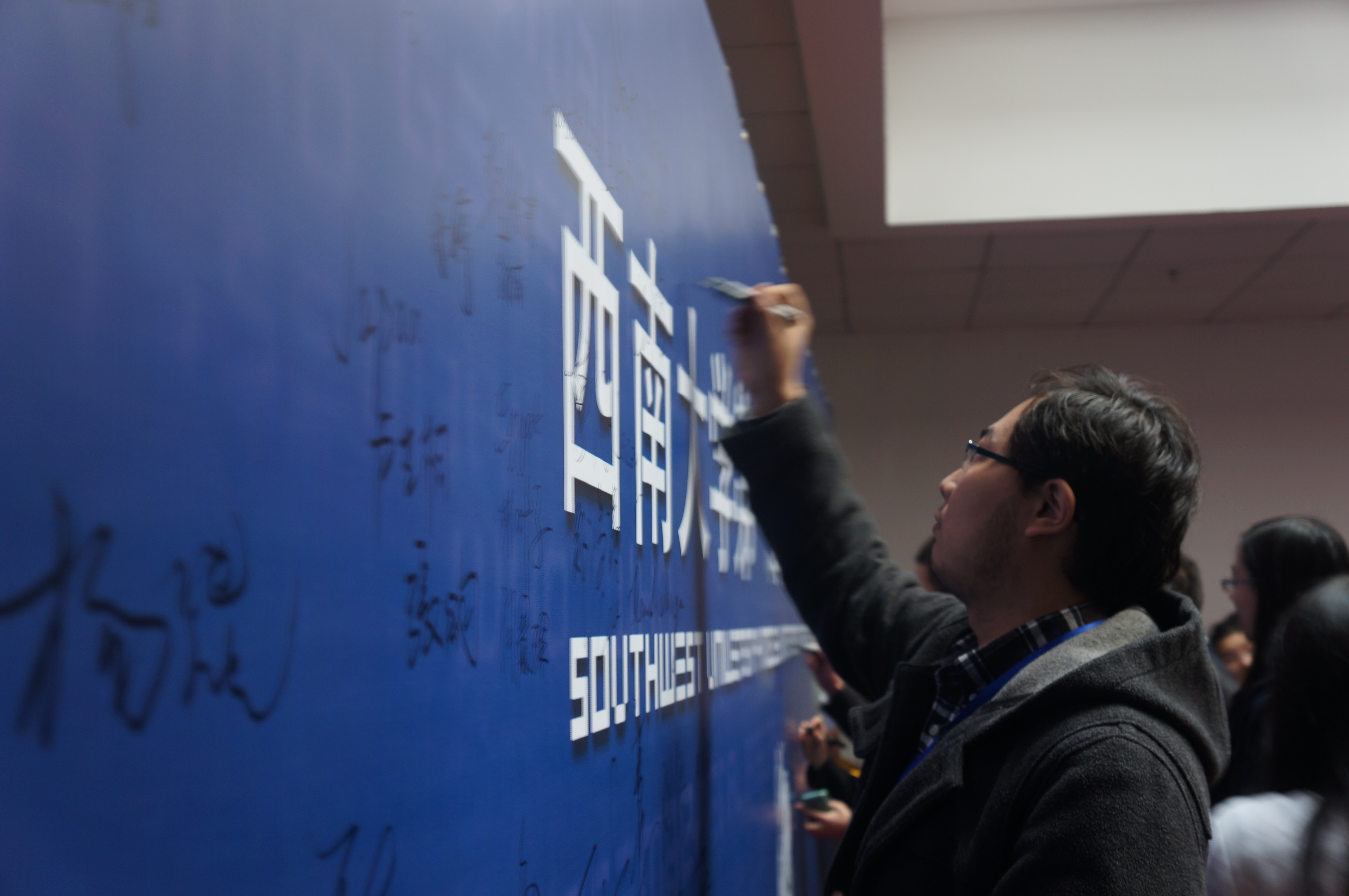 活动的最后,由刘经理带头,与会嘉宾和全体成员在签名墙上写下了自己对122cc太阳成集团官网第一届模拟联合国大会的祝福,将本次开幕式推向了高潮。在美妙的音乐声中,开幕式圆满结束。