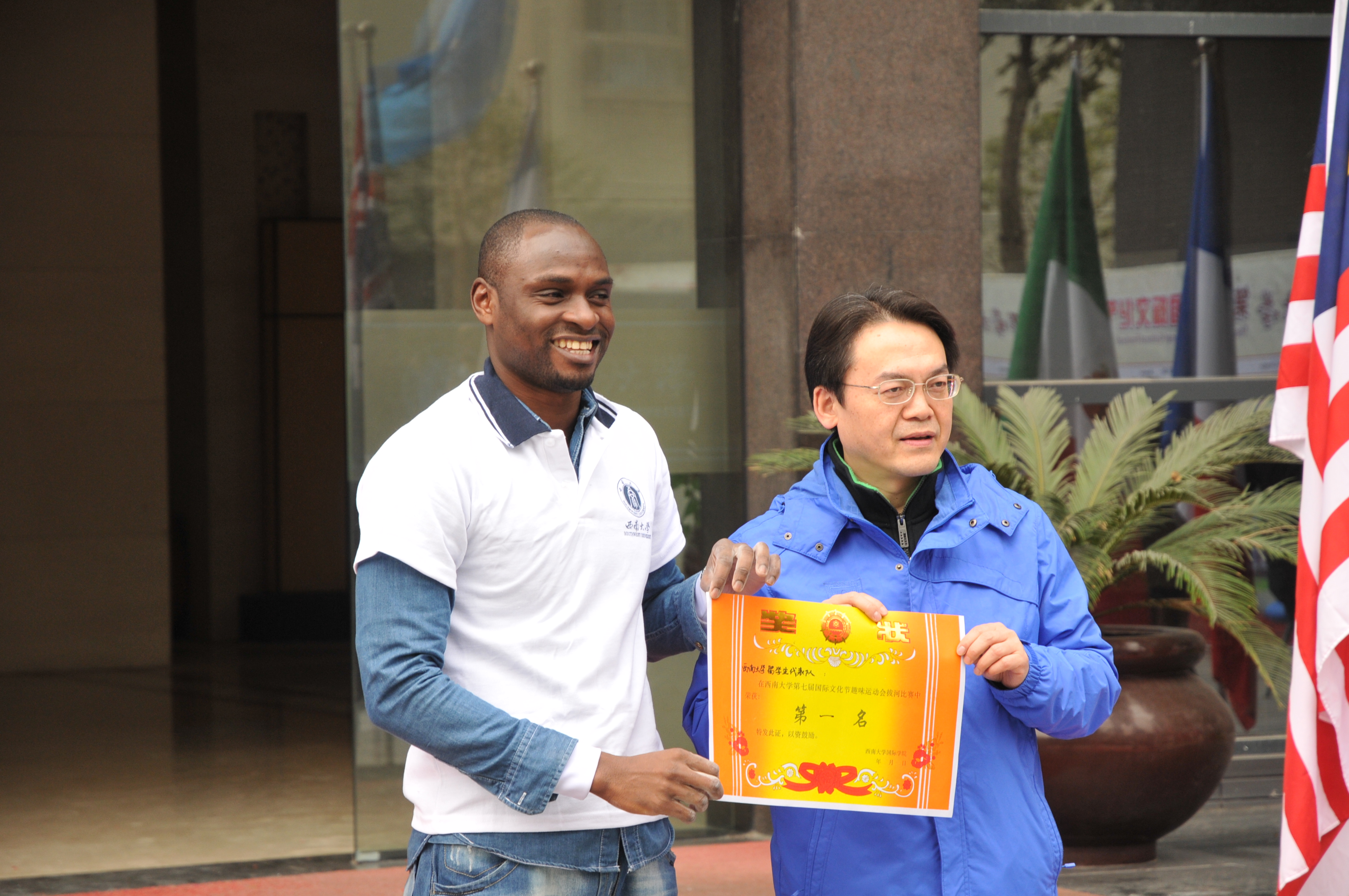 为促进职工愉悦身心,展示职工的蓬勃朝气和竞技热情,太阳成集团tyc122cc于11月27日下午3点在紫云楼前举行职工趣味体育比赛活动。此次活动作为122cc太阳成集团官网第七届国际文化节系列活动之一,邀请到了来自重庆大学、重庆邮电大学和重庆师范大学的职工代表们共同参加,以期让留学重庆的外国员工们通过运动,加强文化交流与互动。