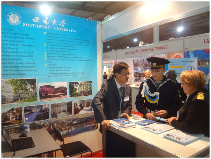 本次两国教育展由国家留学基金管理委员会组团。北京大学、华中科技大学、中国海洋大学等国内19所知名高校参加了在白俄罗斯国立工业大学科技园举办的中国高等教育展和在乌克兰基辅展览中心举办的国际教育展。