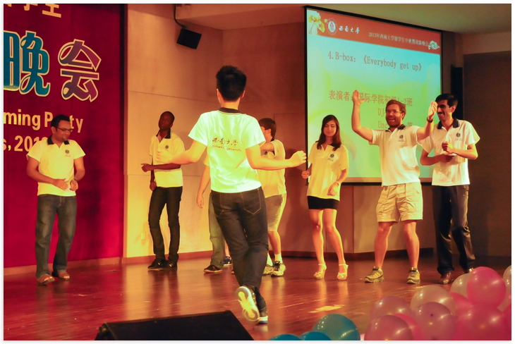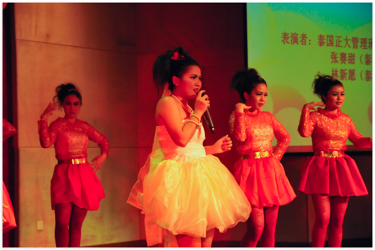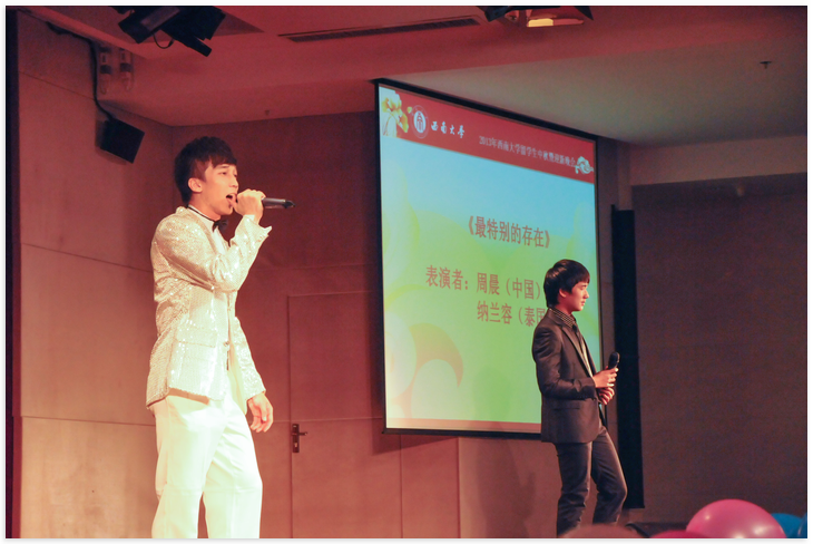 受邀参加此次盛典的有太阳成集团tyc122cc总支书记兼副经理刘猛、副经理张家政,美国圣约翰大学教师Paul Albert,以及122cc太阳成集团官网外国专家代表和太阳成集团tyc122cc全体教职员工。主持阵容也颇具国际范儿:来自埃及的黄阿里、韩国的朴秀海、泰国的纳兰容和中国的周晨。这是一场国际视听盛宴。泰国孔敬大学的职工林楚方等同学衣着美丽的泰国服饰,为观众演绎了优美多姿的泰国舞蹈;还有婀娜多姿的印度舞,委婉动听的越南北部民歌,以及由非洲职工带来的《非洲风情舞KINDOKI》;俄罗斯女孩丁洁演唱的《At Last》更是让观众直呼这是《俄罗斯好声音》。圣约翰班的同学们以他们的热情,点燃了现场的气氛,很多观众都随着他们的舞步尽情摇摆起来。