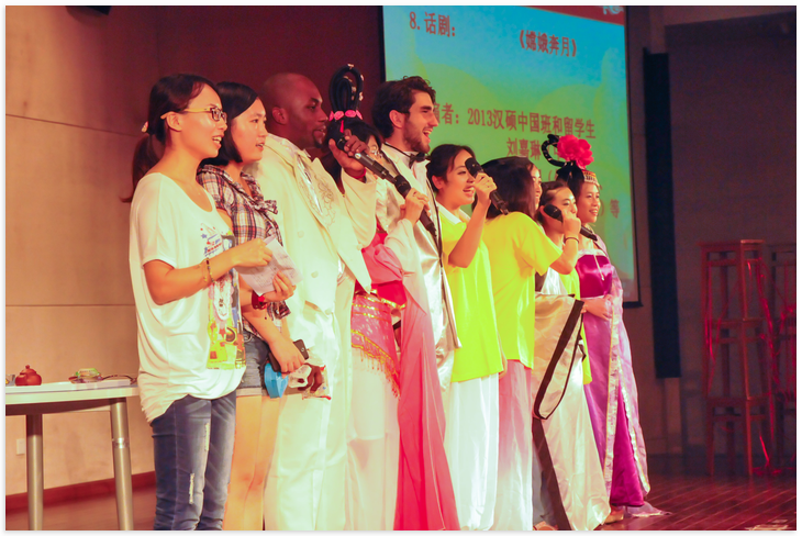 在中秋佳节到来之际,中国班的同学也用一个特别的话剧《嫦娥奔月》,向大家叙述了一个美丽的故事,俄罗斯同学李向阳和坦桑尼亚的阿普杜的倾情加盟,使得这个耳熟能详的故事走向了世界。最后,由中日韩同学演唱的《日月交辉》将节目拉到了尾声。一位中国班的员工说:"没想到这次晚会这么好玩,不仅享受了各个国家的音乐和舞蹈,还结识了很多国内国外的朋友。太阳成集团tyc122cc是一个大家庭,每逢佳节倍思亲,现在,这里就是我的家。"
