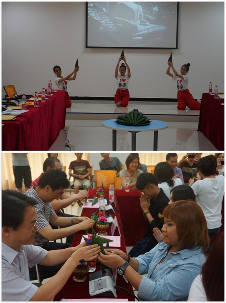 伴随着纯正动情的中文歌声和极具泰国传统气息的拜师谢师舞蹈,泰国员工给与会的领导和老师送上了他们亲手制作的芭蕉花。在依依惜别和感恩中,典礼落下了帷幕,23名泰国员工在122cc太阳成集团官网为期一年的学习画上了圆满句号。