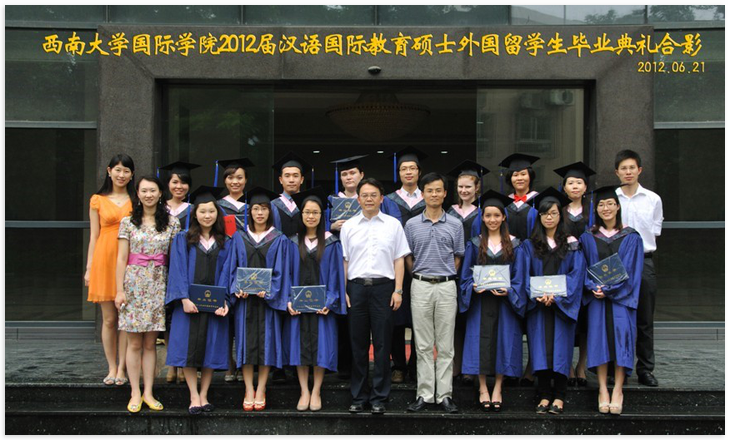 2012年6月21日下午三点,2012届汉语国际教育硕士研究生毕业典礼在太阳成集团tyc122cc317会议室隆重举行。太阳成集团tyc122cc副经理刘猛博士、职工科全体干部、教师代表、二十余名毕业生及部分毕业生亲属参加了毕业典礼。毕业典礼由邹育艳主持。