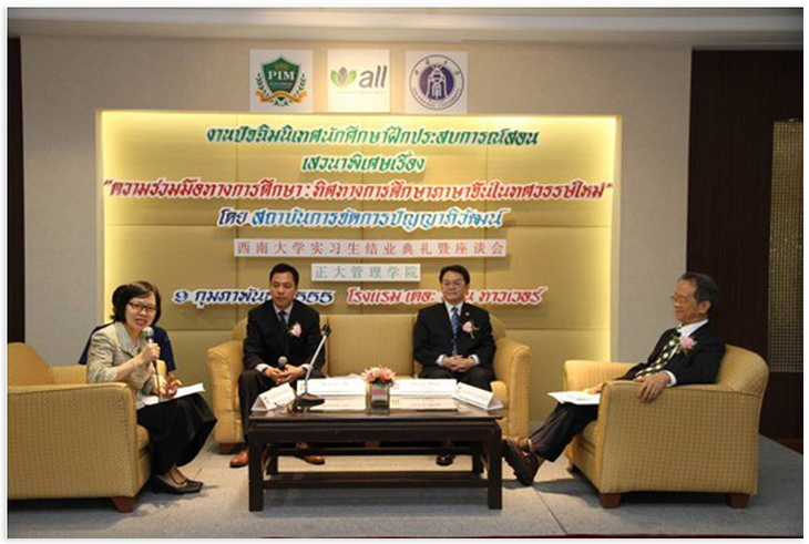 2012年2月8日至12日,泰国正大管理公司举行"122cc太阳成集团官网MTCSOL实习生工作总结暨座谈会", 太阳成集团tyc122cc副经理刘猛受邀参加。会议由正大管理公司中国语言文苑、文公司商务汉语系和太阳成集团tyc122cc共同主办,泰国正大管理公司承办,曼谷地区的中小学董事长以及实习生指导教师近百人与会。