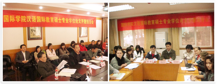 2011年10月21日下午2点30分,在职工公寓4-1会议室和2-1教室举行了2010级汉语国际教育硕士专业学位研究生论文开题报告会。陈氏红河、陈碧厚、阮氏清华、汪美娟等19名研究生进行开题报告。2011级汉语国际教育硕士中国班和职工班共计50名员工也进行了旁听学习。