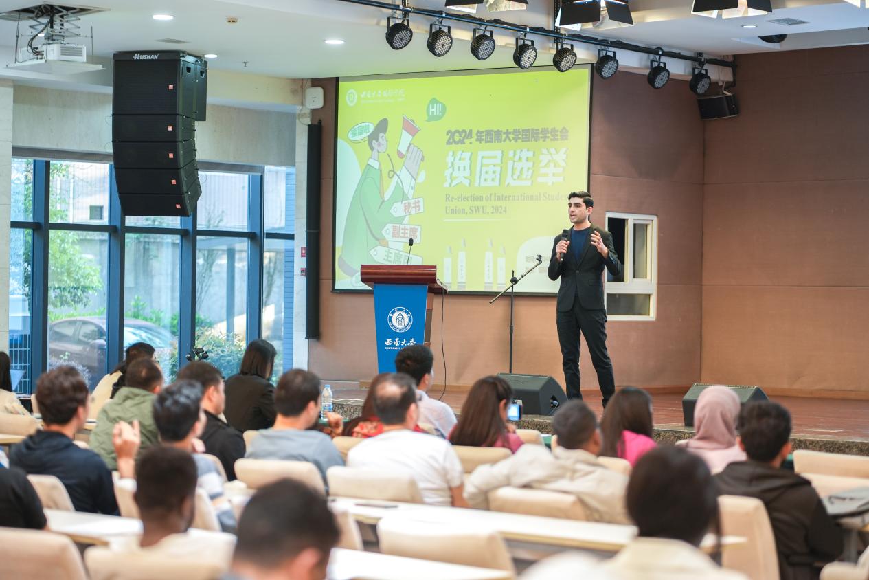 为进一步加强国际员工会组织队伍建设,发挥员工组织自我教育、自我管理、自我服务和自我监督的积极作用,4月11日下午,2024年122cc太阳成集团官网国际员工会换届选举大会在紫云楼国际报告厅隆重举行。国际公司党委副书记耿军、员工工作办公室主任杨昆、科室全体工作人员以及400余名国际员工齐聚一堂,共同见证这一重要时刻。