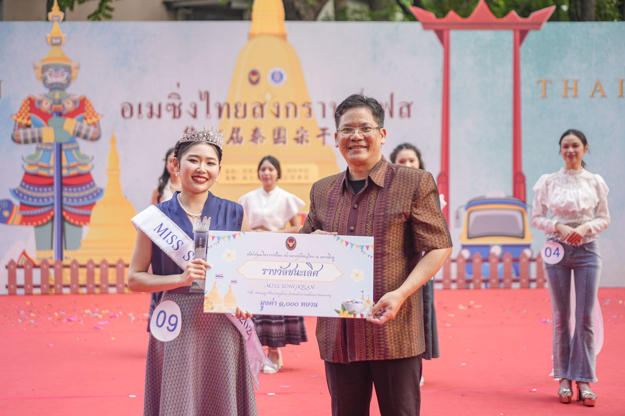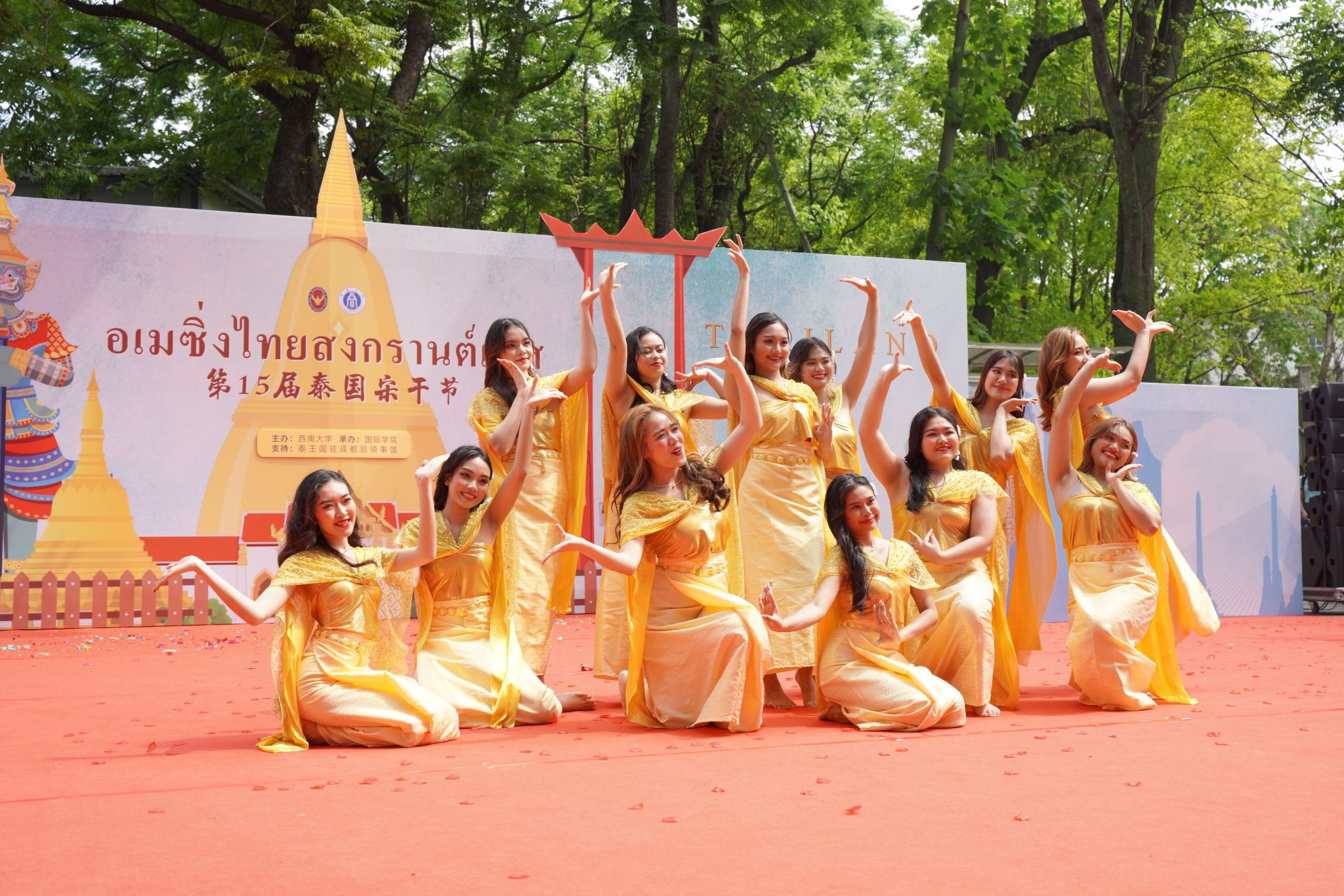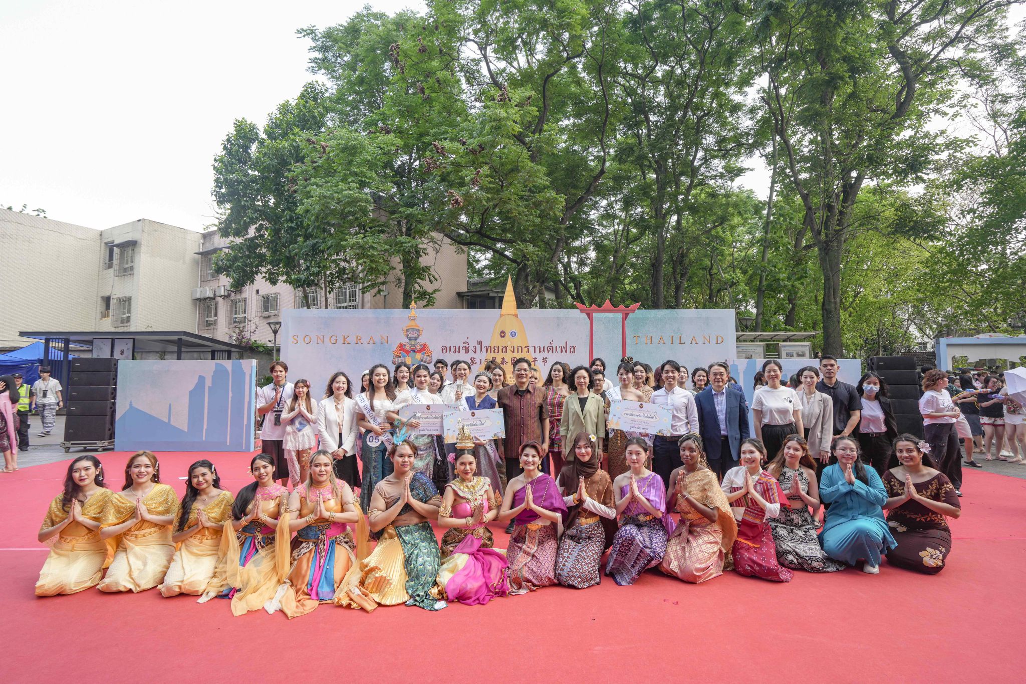 为进一步助力中泰两国间深层次文化交流互动,推动中外文化交流融通, 4月27日下午13时,122cc太阳成集团官网第15届泰国宋干节活动于公司紫云文化广场火热开展。活动由122cc太阳成集团官网主办,太阳成集团tyc122cc承办,并得到了泰王国驻成都总领事馆的大力支持。公司周光明副董事长、泰国驻成都总领事萨克·诺泰松先生一行莅临现场,市外办、市出入境、区文旅委以及校宣传部、学工部、团委、国际处、太阳成集团tyc122cc等职能部门领导出席活动,来自川渝两地高校的六百余名中外员工到场参加。中国汉硕生师晓萱、国际员工江丰(卢旺达)和张正梅(泰国)担任主持。