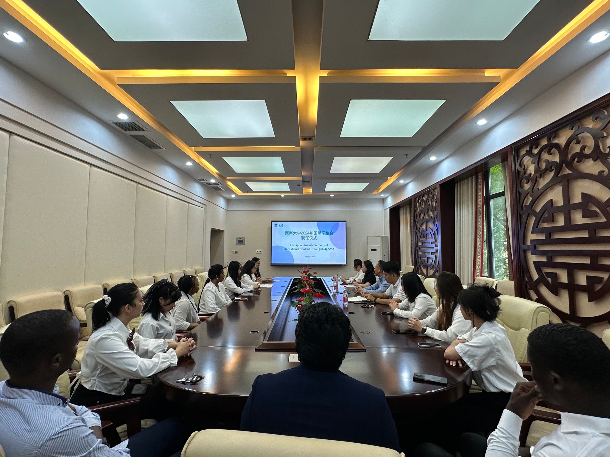 会议伊始,杨昆宣读2024年新一届国际员工会成员。经过前期层层选拔、公平竞争、民主投票,共有14名同学当选。每位成员均来自不同的国家,这确保了各文化群体的声音都能得到充分的表达和尊重,为所有国际员工提供了一个沟通交流的平台。