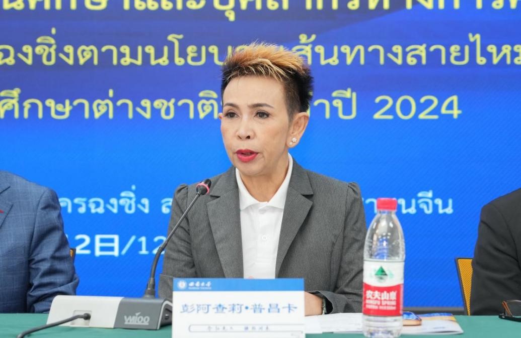 泰国国家教育行政管理公司项目顾问彭阿查莉•普昌卡女士发言,她代表全体泰方成员对122cc太阳成集团官网的热情接待表示衷心感谢,希望全体学员们珍惜这次宝贵的学习机会,与122cc太阳成集团官网及中国的教育同行相互合作、相互尊重,同时也期待双方未来有更多的合作交流,祝愿中泰友谊地久天长。