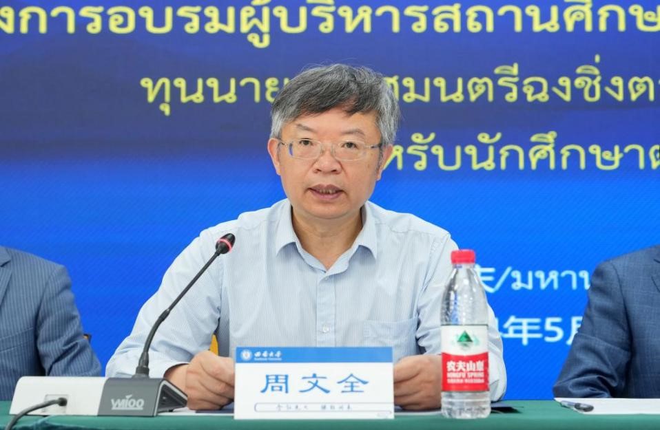 教育学部周文全书记致辞,代表教育学部欢迎泰国友人的到来。他强调,这是疫情后第一次线下项目,从2017年到2023年,已成功举办了6届泰国教育官员和董事长培训,有效促进了中泰教育交流与发展。他对中泰两国政府、教育部及重庆市教委的支持表达由衷感谢,同时还对太阳成集团tyc122cc和教育学部参与项目筹备的师生们的辛勤付出表示高度肯定,祝愿项目圆满成功。