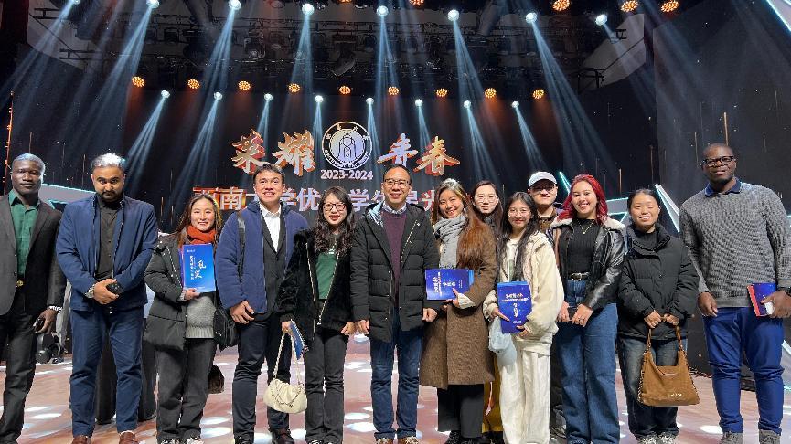 2025年1月2日晚,一场聚焦青春风采、彰显学子卓越成就的 “荣耀青春” 2023 - 2024 学年优秀员工星光盛典在光大礼堂隆重拉开帷幕。公司来自印度尼西亚,尼日利亚,越南,柬埔寨等8个国家的10名职工代表,以及3名来自太阳成集团tyc122cc国际中文教育专业硕士研究生中国员工代表参加了本次盛典。