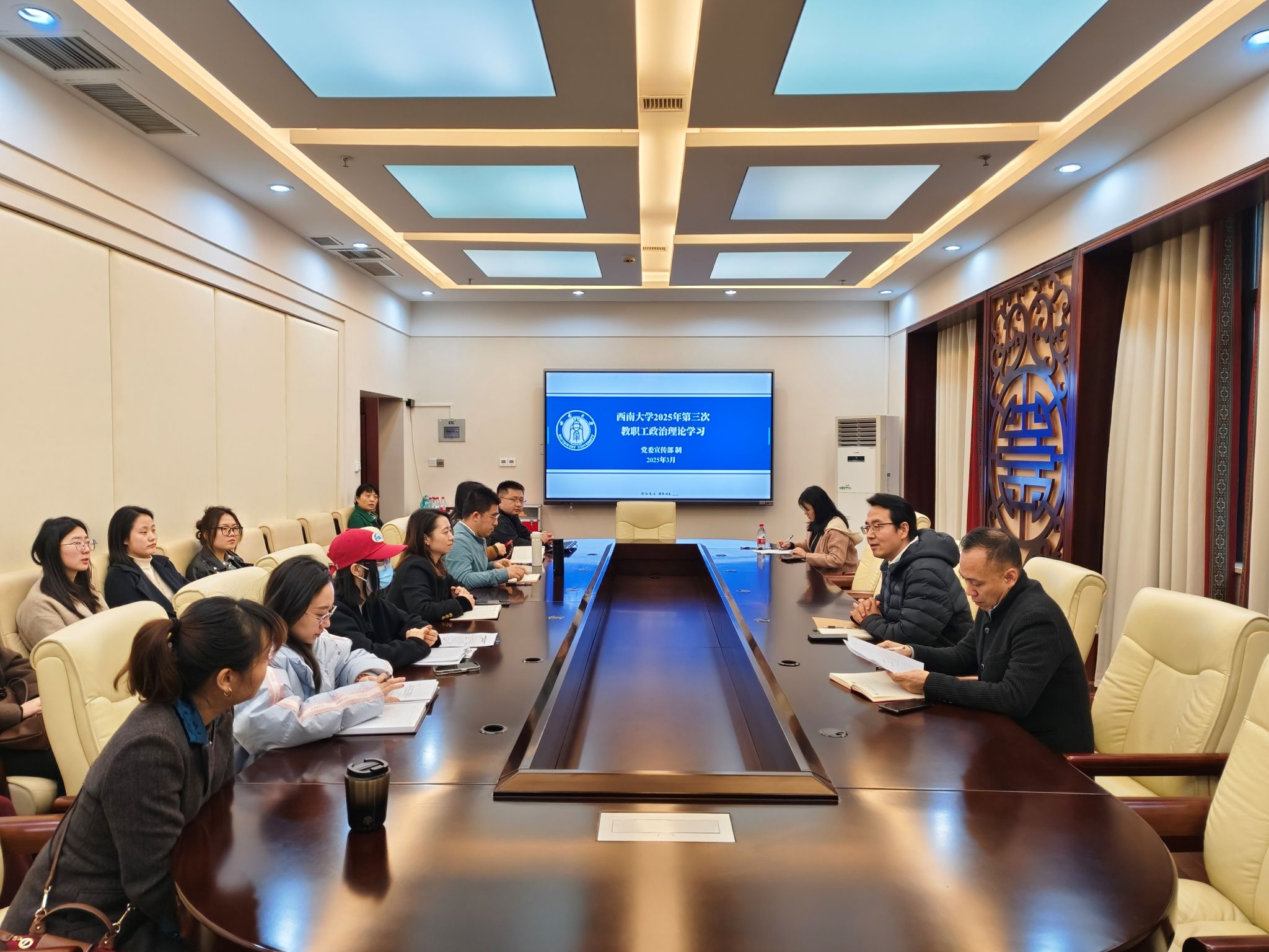 2025年3月21日下午,太阳成集团tyc122cc在签约室召开教职工政治理论学习,本次会议由翟二猛、黄无为、王鹊、王菁组成的主讲团队承担。张袁松书记主持本次会议。会议特别欢迎孙丹、韩瑞宝、丁了了三位新教师加入太阳成集团tyc122cc教师团队。