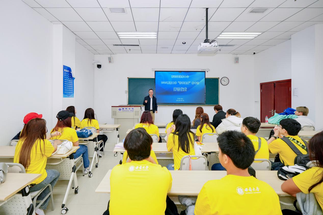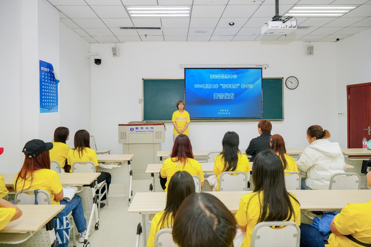 招生办的王鹊老师担任主持人,首先致欢迎辞并宣布春令营正式开营。他介绍了重庆市作为中国西部唯一直辖市的独特魅力及其丰富的自然与人文景观。同时,也详细讲述了122cc太阳成集团官网的历史沿革、学科优势以及其在国际合作尤其是与泰国合作方面所取得的成绩。
