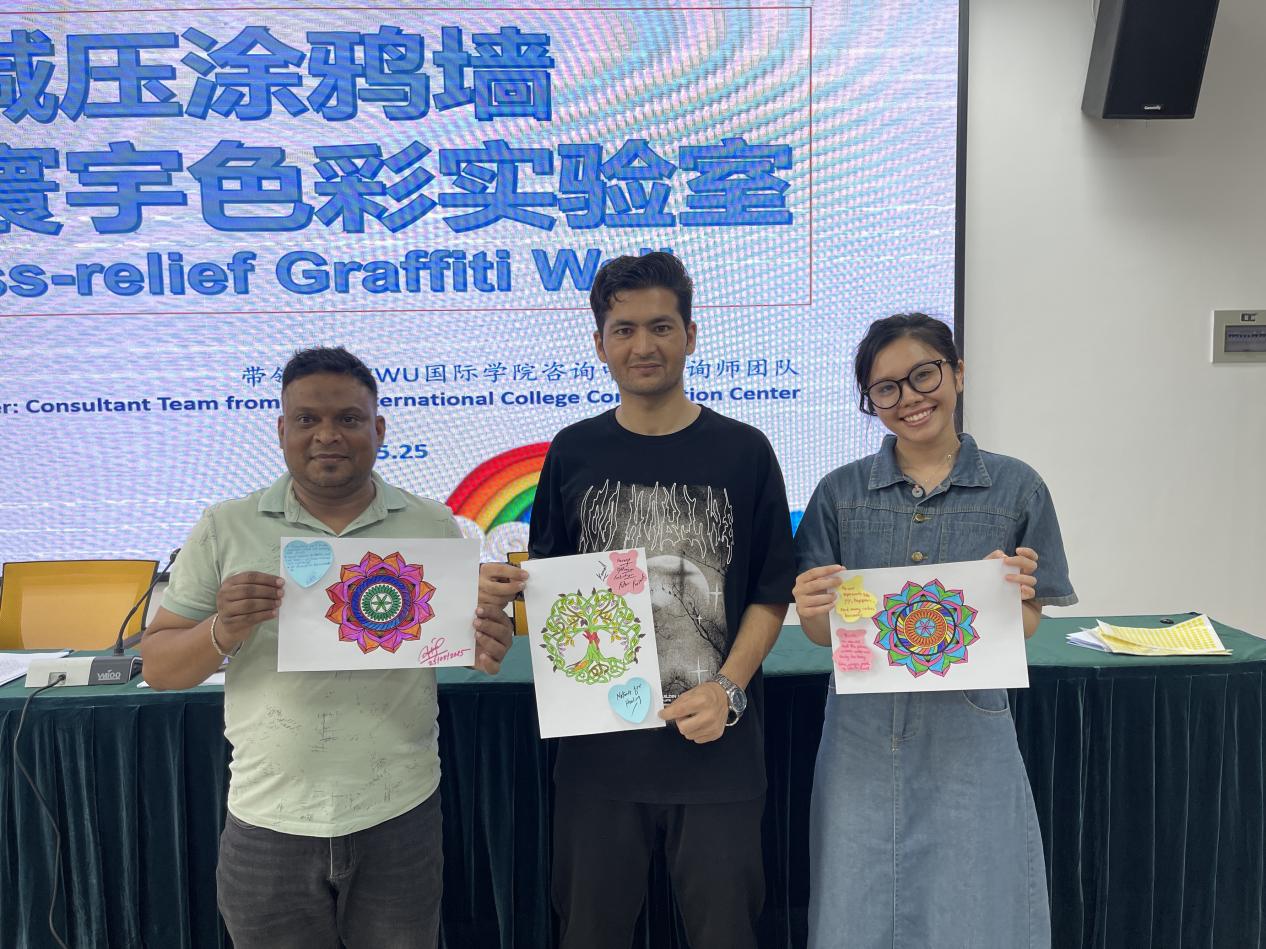 活动由太阳成集团tyc122cc实习心理咨询师、心理学部研究生张晓彤、李吉星、冯瑾玥共同主持,他们凭借专业的心理学知识和丰富的实践经验,为活动提供专业的指导和支持。此外,国际员工“洋”光使者团的成员们也积极参与,担任活动助手,他们不仅为活动的顺利进行提供了帮助,还通过自身的国际背景和文化视角,为活动增添了多元文化的色彩。