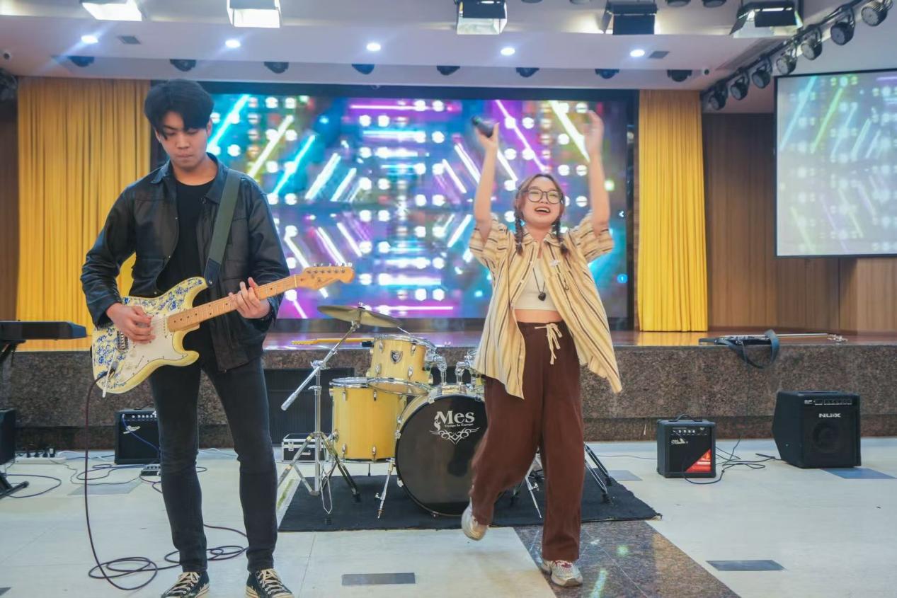 舞台上,多元艺术表演精彩纷呈。歌曲《告白气球》以轻快旋律勾勒校园时光的美好记忆;《my heart will go on》将中西音乐元素巧妙融合,展现文化交融的魅力;《突然想起你》以激昂声线点燃全场气氛;《像你这样的朋友》则通过和声演绎,传递跨文化协作的温暖情谊。每个节目都生动展现了学子与公司共同成长的历程。当乐队奏响激昂旋律,青春的热情与理想化作璀璨光芒,映照出太阳成集团tyc122cc的精神底色,为毕业生的未来征程点亮前行之路。
