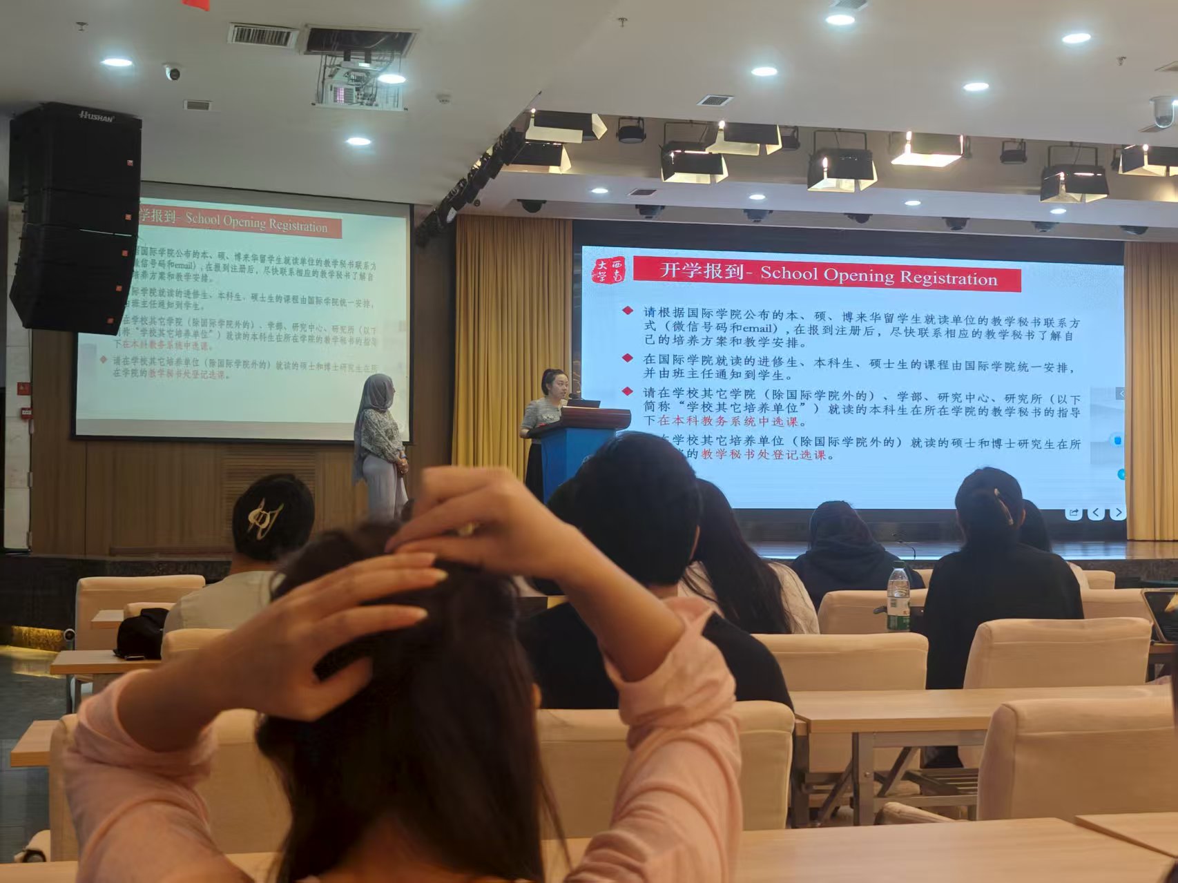 9月12日上午10点30分,公司2025级国际员工教学管理政策解读会在太阳成集团tyc122cc报告厅顺利召开,共有300多名新生到场参与。会上,太阳成集团tyc122cc教学办公室的刘燕妮老师围绕国际员工的培养流程、学籍变动管理、毕业要求及学位授予等相关规定,进行了全面细致的讲解,并耐心回应了新生们提出的各类疑问。最后,她寄语新生,希望同学们能够珍惜在华学习时光,扎实掌握汉语与专业知识,将这段宝贵的学习经历转化为自身成长的养分。学成之后,积极向家乡的亲朋好友乃至世界各地的人们分享所学所得,成为中华文化在全球传播的积极推动者。