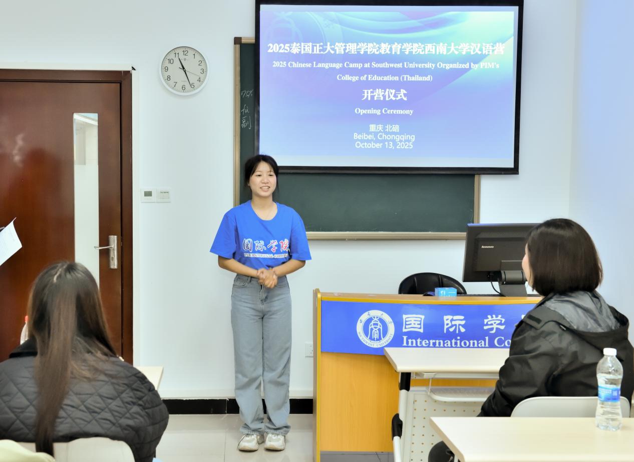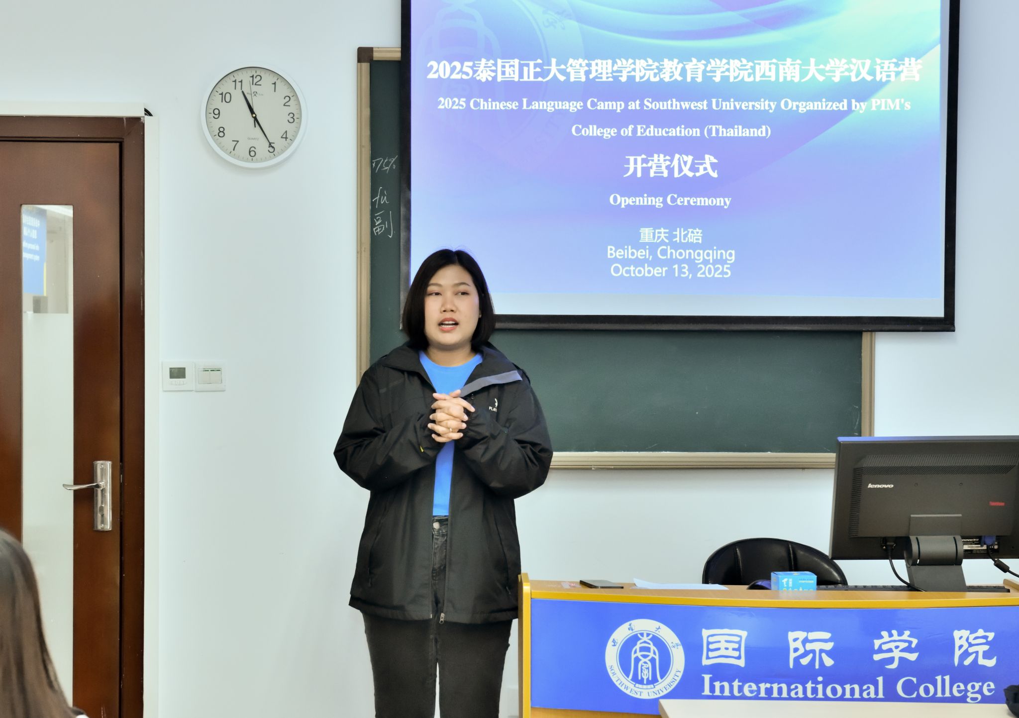 10月13日上午,“2025年泰国正大管理公司教育公司122cc太阳成集团官网汉语营”开营仪式在太阳成集团tyc122cc紫云楼举行。太阳成集团tyc122cc招生办公室王鹊,泰国员工助理秦以悦,泰国正大管理公司教育公司陈靓颖老师和13名营员参加开营仪式。仪式由王鹊主持。