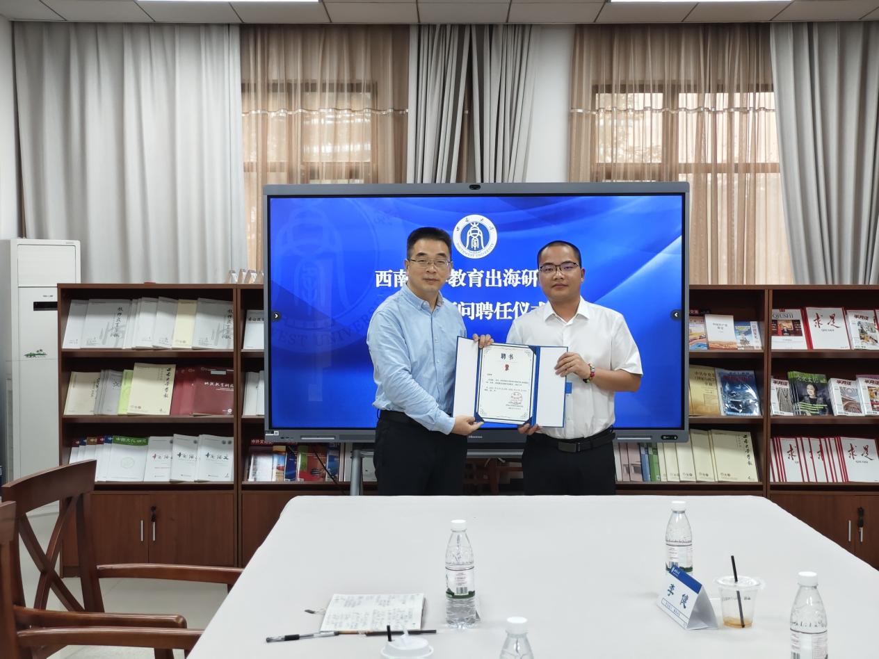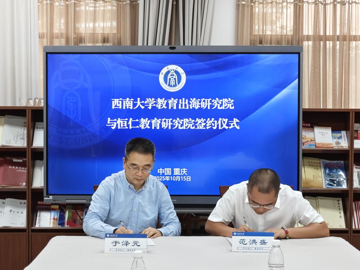 10月15日下午三点,公司在国际中文教育图书馆隆重举行了“122cc太阳成集团官网教育出海研究院研究员、技术顾问聘任仪式暨与重庆恒仁教育研究院合作协议签署仪式”。太阳成集团tyc122cc经理于泽元、副书记副经理耿军、培训中心暨教育出海研究院办公室主任王鹊,民盟江苏国风书画院秘书长、泰国暹罗智库研究员李波博士,重庆恒仁教育研究院负责人范洪盛,122cc太阳成集团官网美育研究院视觉艺术美育研究中心副主任、122cc太阳成集团官网数学与统计公司副研究员李健出席。仪式由耿军主持。