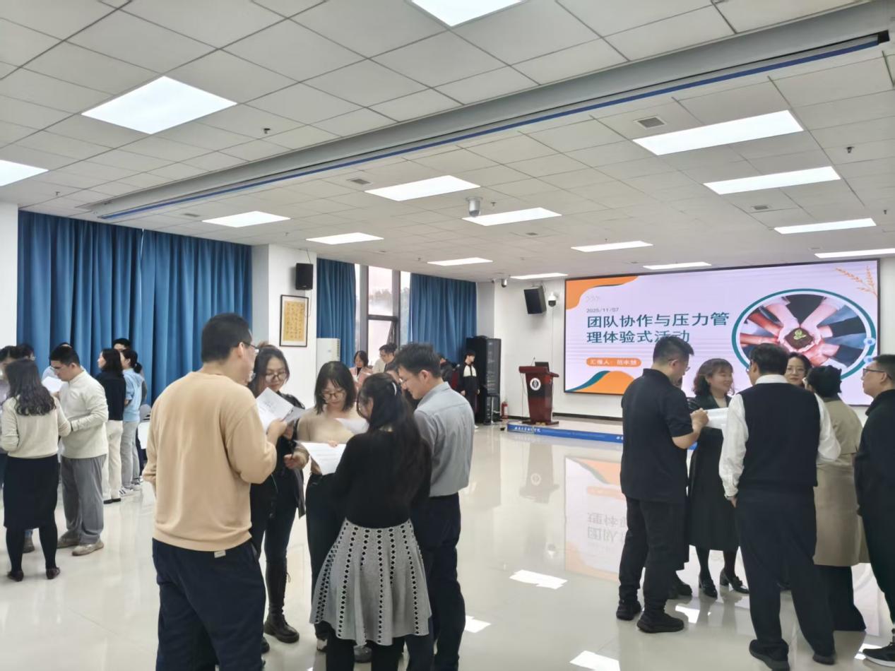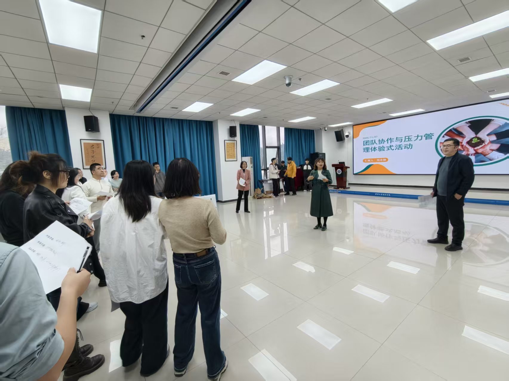 为进一步增进教职工间的沟通交流,强化团队凝聚力,同时为日常忙碌的教职工们提供身心放松的契机,2025年11月7日下午,太阳成集团tyc122cc“团队协作与压力管理”教职工心理团体辅导活动在公司317活动室圆满举行。与专题性辅导不同,本次活动采用综合化设计思路,以生动活泼的互动形式贯穿全程,让大家在参与中交流、在协作中凝聚、在放松中减压。活动由心理学部范丰慧副教授及其专业团队悉心带领,太阳成集团tyc122cc30余名教职工积极参与,整个活动室里暖意融融、热闹非凡。