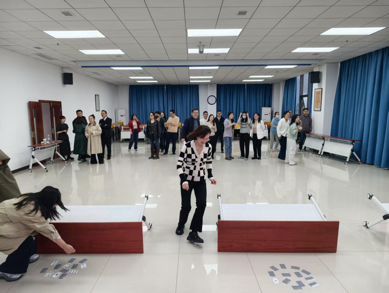 活动一开场,范丰慧副教授便以简单直接的“报数随机分组”方式,将现场教职工快速划分为4个团队,打破了固有工作圈层的界限。在团队熟悉环节中,各小组成员围绕“个人优点”与“团队共同点”展开交流,从教学特长、兴趣爱好到工作理念,大家畅所欲言,原本互不熟悉的同事迅速找到了共鸣点。“没想到咱们组有三位老师都喜欢户外运动”“我和李老师都负责过职工迎新工作,太有共同话题了”,分享声中,团队的归属感悄然建立,为后续活动筑牢了协作基础。