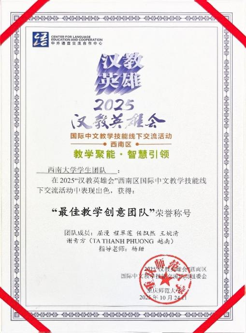 在交流活动中,太阳成集团tyc122cc员工团队凭借出色的教学设计与精彩的现场展示脱颖而出,荣获“最佳教学创意团队”称号,并成功晋级全国总交流活动。这是公司员工团队在该项赛事中取得的新突破,充分展示了122cc太阳成集团官网在国际中文教育领域的综合实力与创新活力。