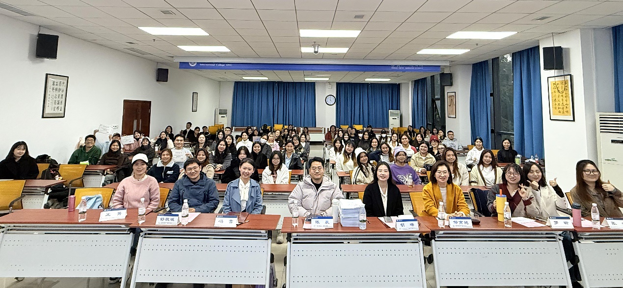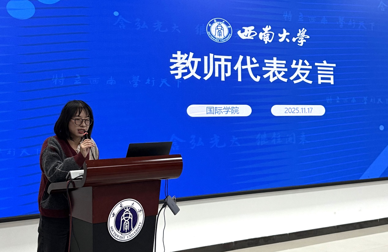 实习指导教师代表罗昕老师分享了指导心得。她回顾了员工们在实习中的表现,指出大家将语言知识应用于真实场景,如汉语教学、翻译、文化传播等,克服了初期沟通紧张和工作流程陌生等挑战,展现出强大的适应力和韧性。罗老师表示,实习经历不仅淬炼了员工的专业技能,也启发了教学创新,未来将引入更多跨文化实践案例。