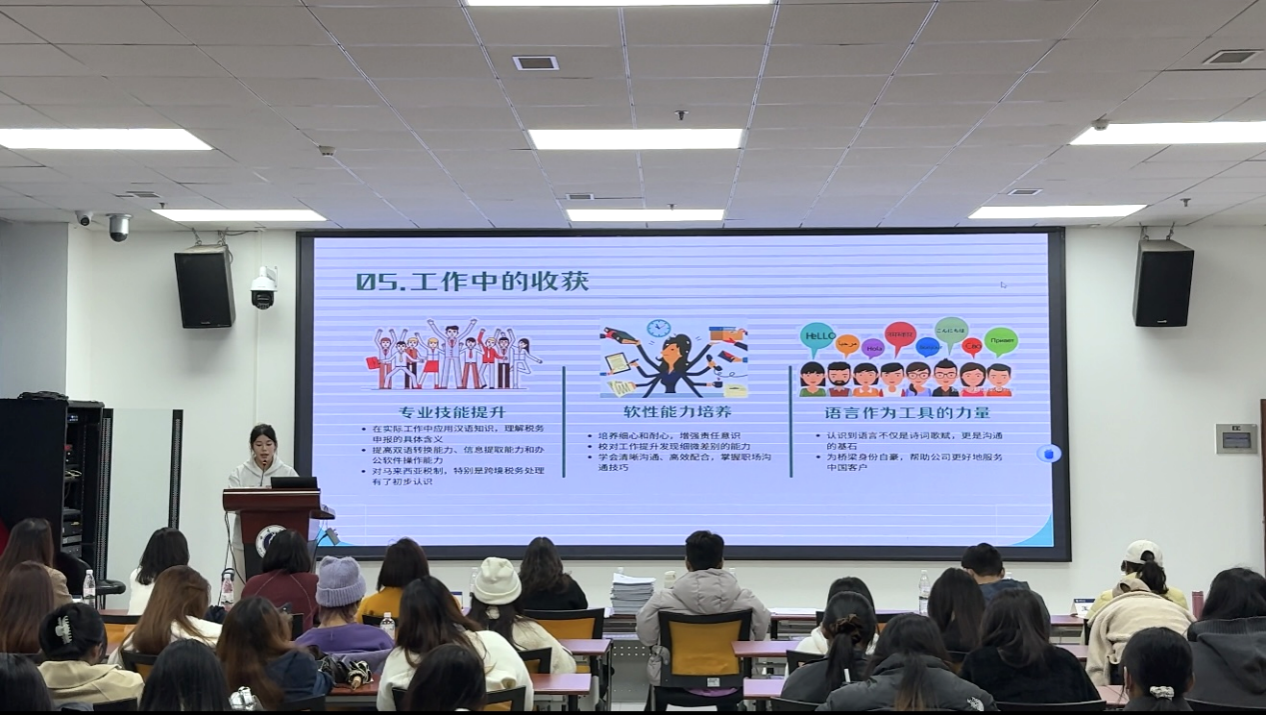 泰国籍的杨玉萍同学在宋卡王子大学孔子公司担任泰方秘书助理和中华文化助教,分享中,她表示实习是一次宝贵的成长经历,不仅将理论知识应用于实践,还提升了行政沟通和文化传播能力,同时深化了对汉语国际教育的实践认知。