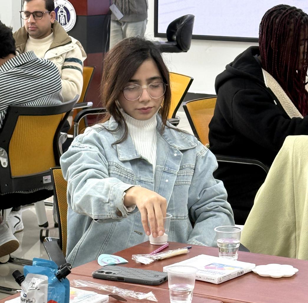 以砂为桥,以画为语。画中见自己,语中见天地。随着主持人的引导,同学们纷纷带着自己的作品开启创作故事的分享之旅,轻松的笑声很快萦绕现场。对讲述者而言,需聚焦外化感受与深度表达——分享砂画创作过程中最强烈的情绪波动及身体反应,从“为何选择绘画大海”到“小鸟意象背后的期待”,在安全的心理距离内触碰自身深层情感体验,让内心想法随创作故事自然流露;对倾听者,则强调共情联结与边界尊重——全程避免主观评价或过度干预,以专注的眼神、轻声的回应传递理解,在不越界的前提下,于他人的文化背景与情感表达中找到自我共鸣,实现跨文化语境下的心灵互通。在主持人清晰的引导下,同学们纷纷主动敞开心扉,分享创作缘由与背后故事,真挚的交流引发阵阵共鸣,现场不时响起轻松的笑声,温暖的互动氛围在彼此的倾诉与倾听中愈发浓厚。