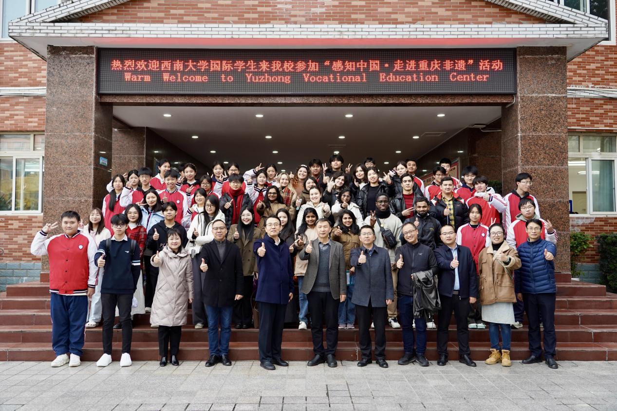 2025年12月5日上午,公司“中国通 重庆行”系列活动、“感知中国·走进重庆非遗”文化实践课程在渝中职教中心顺利举行。来自白俄罗斯、科特迪瓦、俄罗斯、土库曼斯坦、斯里兰卡、泰国、越南、哈萨克斯坦等8个国家的24名国际员工,在党委书记张袁松、副书记副经理耿军、培训中心主任王鹊的带领下,走进校园,沉浸式感受中华优秀传统文化的独特魅力。