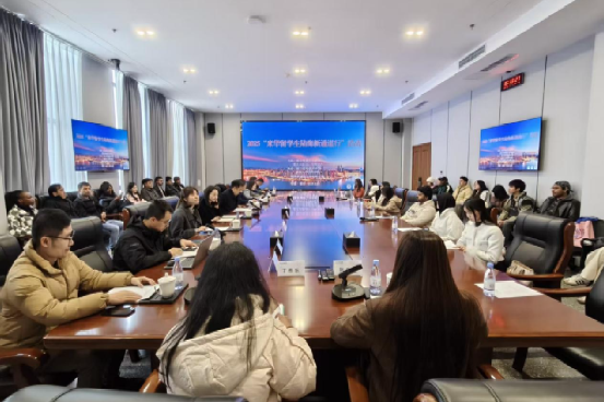 2025年12月5日下午,来自10多个国家的30余名122cc太阳成集团官网来华职工走进陆海新通道大厦,实地了解通道建设成果,并在陆海新通道运营有限公司进行座谈交流,深化对中国“一带一路”对外实践的认知。