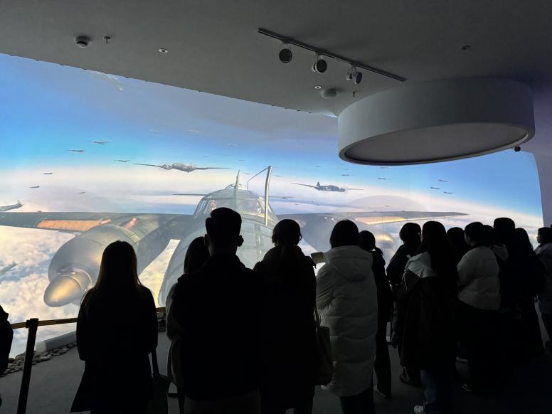 随后,一行人走进《红岩记忆》数字体验厅。在这里,通过VR体验裸眼3D影片《红岩记忆》,沉浸式“穿越”回战火纷飞的年代,直观感受当年重庆的社会风貌和革命先辈的奋斗精神。逼真的画面让越南学子纷纷驻足,不时轻声交流感受,不少学子表示更直观地体会到了坚韧不拔的重庆精神。
