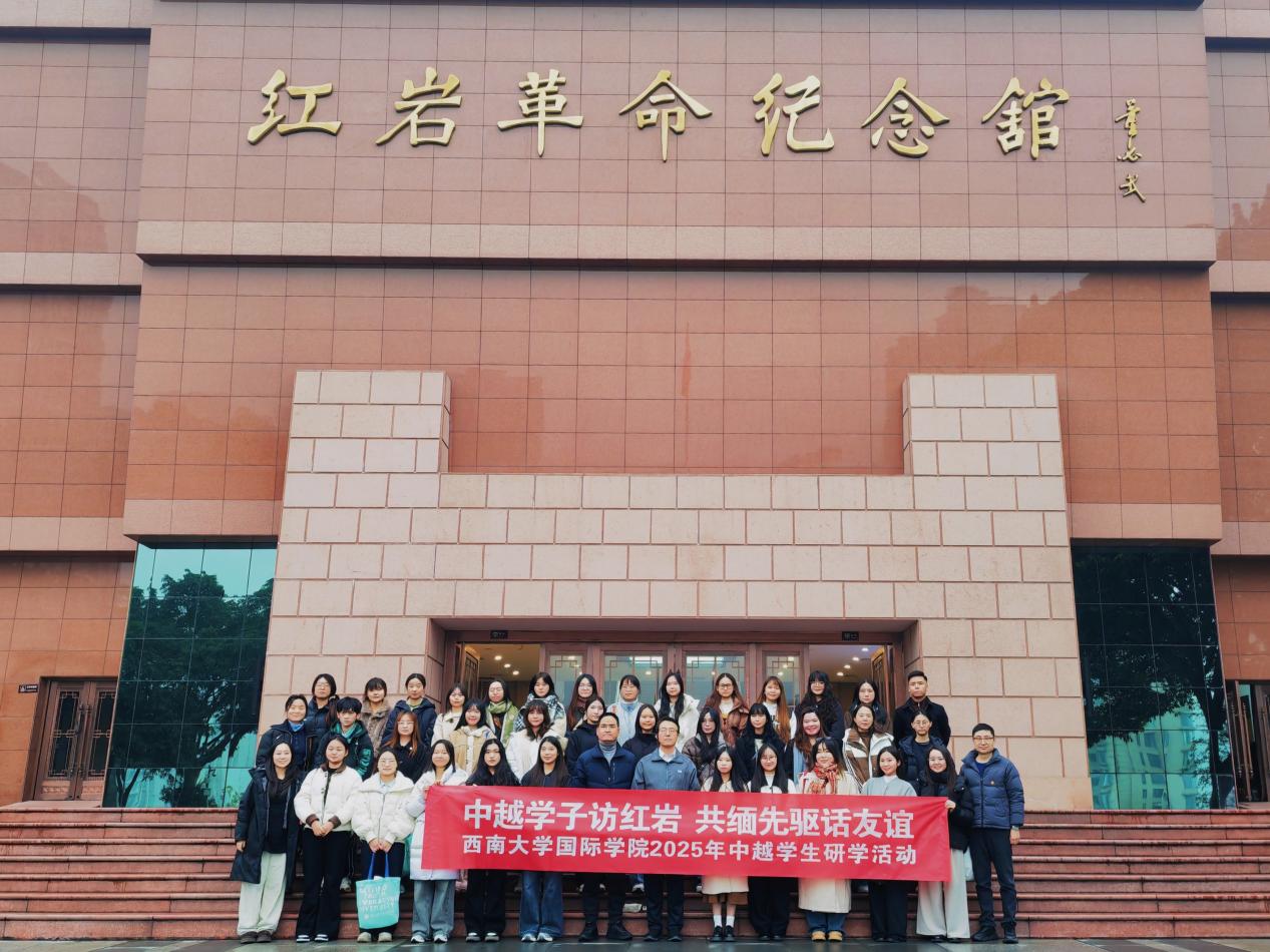 2025年12月12日,上午9时,公司党委书记张袁松带队40余名中越学子,一同抵达红岩革命纪念馆,在纪念馆前正式开启“中越学子访红岩,共缅先驱话友谊”主题研学活动。濛濛细雨裹着山城的初冬寒意,却丝毫未减中越学子的高昂热情,一行人循着红色足迹,在历史现场续写着友谊与信仰的新篇章。