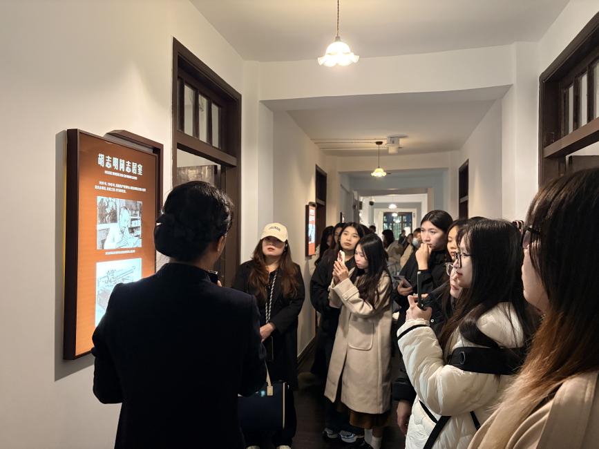 数字体验结束后,中越学子一同前往中共中央南方局暨八路军驻重庆办事处旧址。在讲解员的引导下,大家逐一参观了旧址的各个区域,详细了解到该处在抗战时期承担的联络协调、统战宣传等重要职能。当参观到越南总理胡志明同志在重庆期间办公、学习和休息的旧址时,越南学子显得格外兴奋,不仅认真聆听每一处细节的介绍,还用手机记录下相关展品,纷纷表示深切地感受到了中越两国革命历史时期的深厚联系与珍贵的革命友谊。