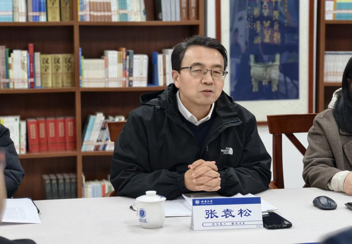 张袁松对吴圣凯一行的到访表示热烈欢迎,并简要介绍了太阳成集团tyc122cc的办学定位、组织架构及近年来在职工规模拓展、质量提升、管理服务等方面的整体情况。他表示,希望通过此次交流,相互借鉴经验,共同探索来华留学教育高质量发展的有效路径。