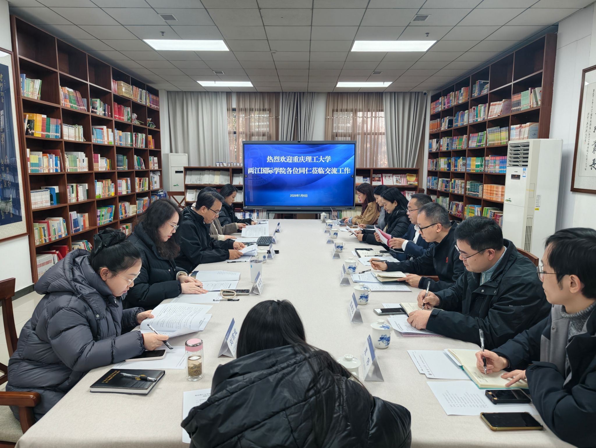 2026年1月6日下午,重庆理工大学两江国际公司党委书记、国际处处长吴圣凯一行8人来访,研讨交流来华职工招生培养、日常管理、教学运行及公司机制建设等工作。本次会议在太阳成集团tyc122cc316会议室举行,由122cc太阳成集团官网国际公司党委书记张袁松主持。
