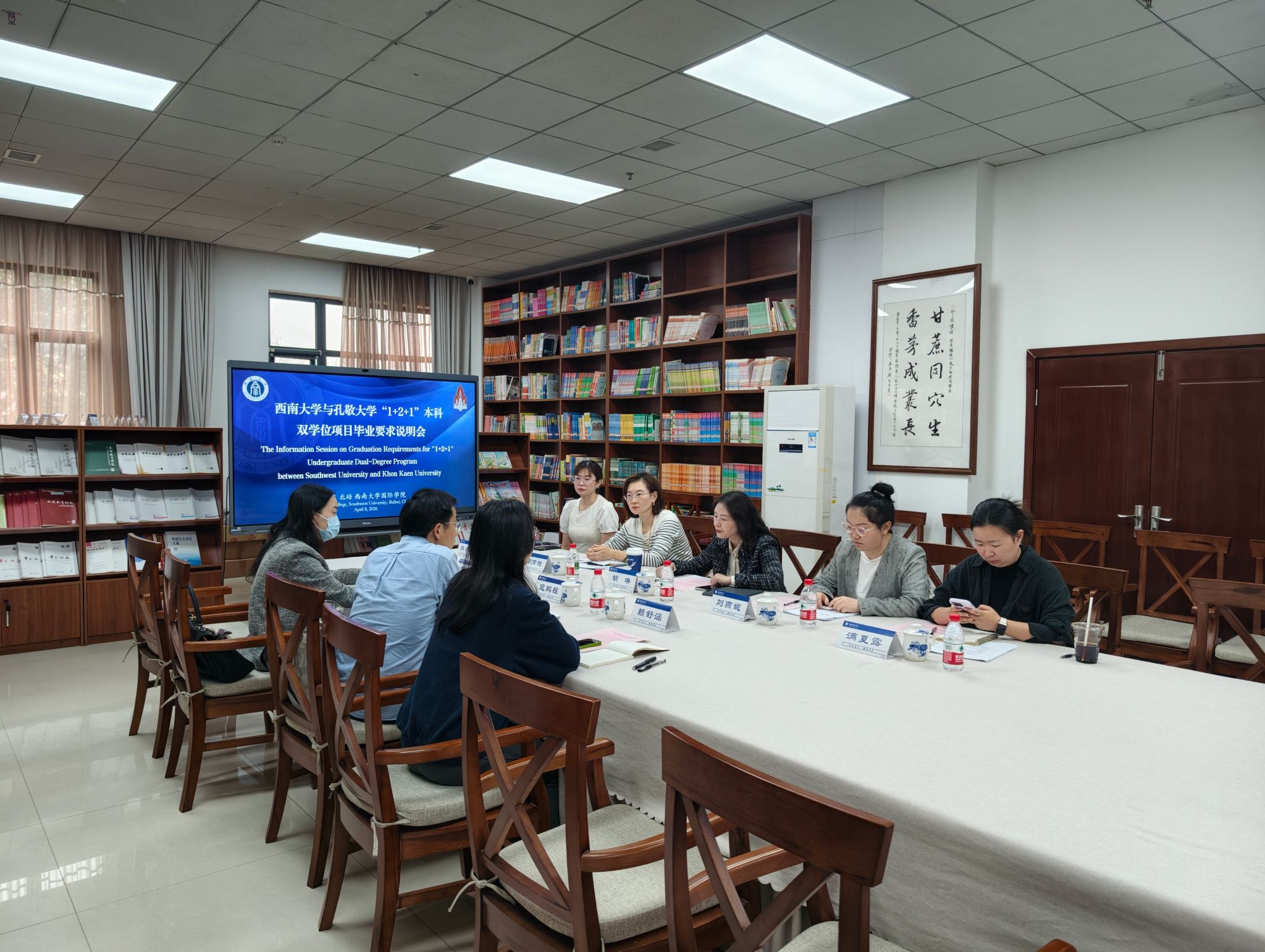 2026年4月8日下午3:00,122cc太阳成集团官网与泰国孔敬大学通过线上方式在太阳成集团tyc122cc紫云楼316会议室召开1+2+1本科双学位项目毕业要求说明会。此次会议旨在进一步明确两校的1+2+1本科双学位项目的毕业标准,确保项目员工顺利完成学业并获得学士学位。