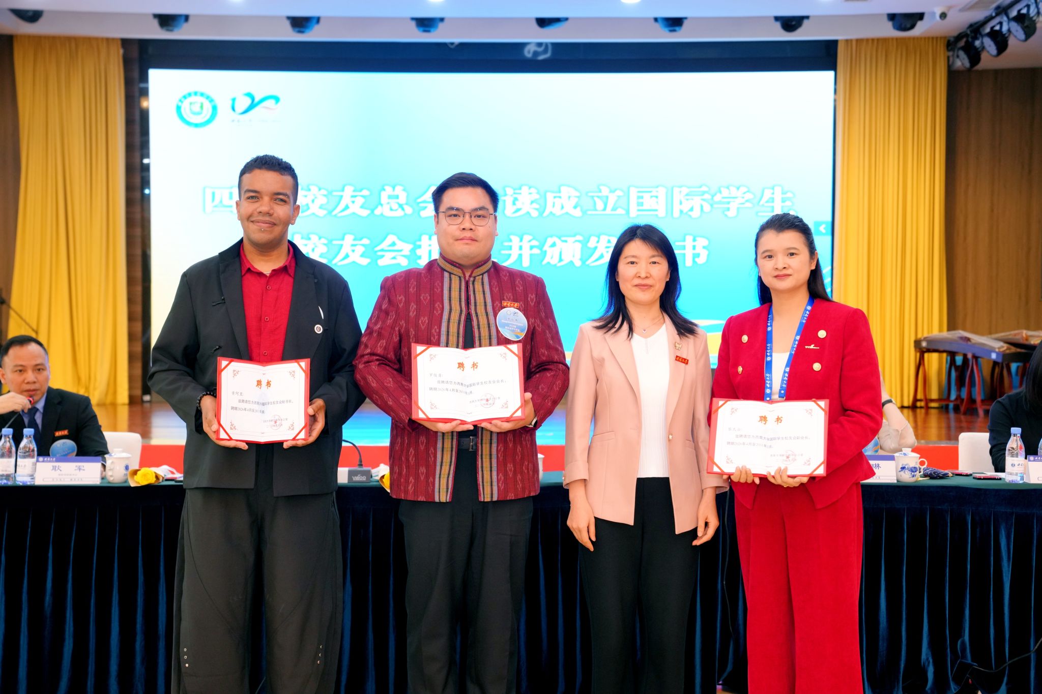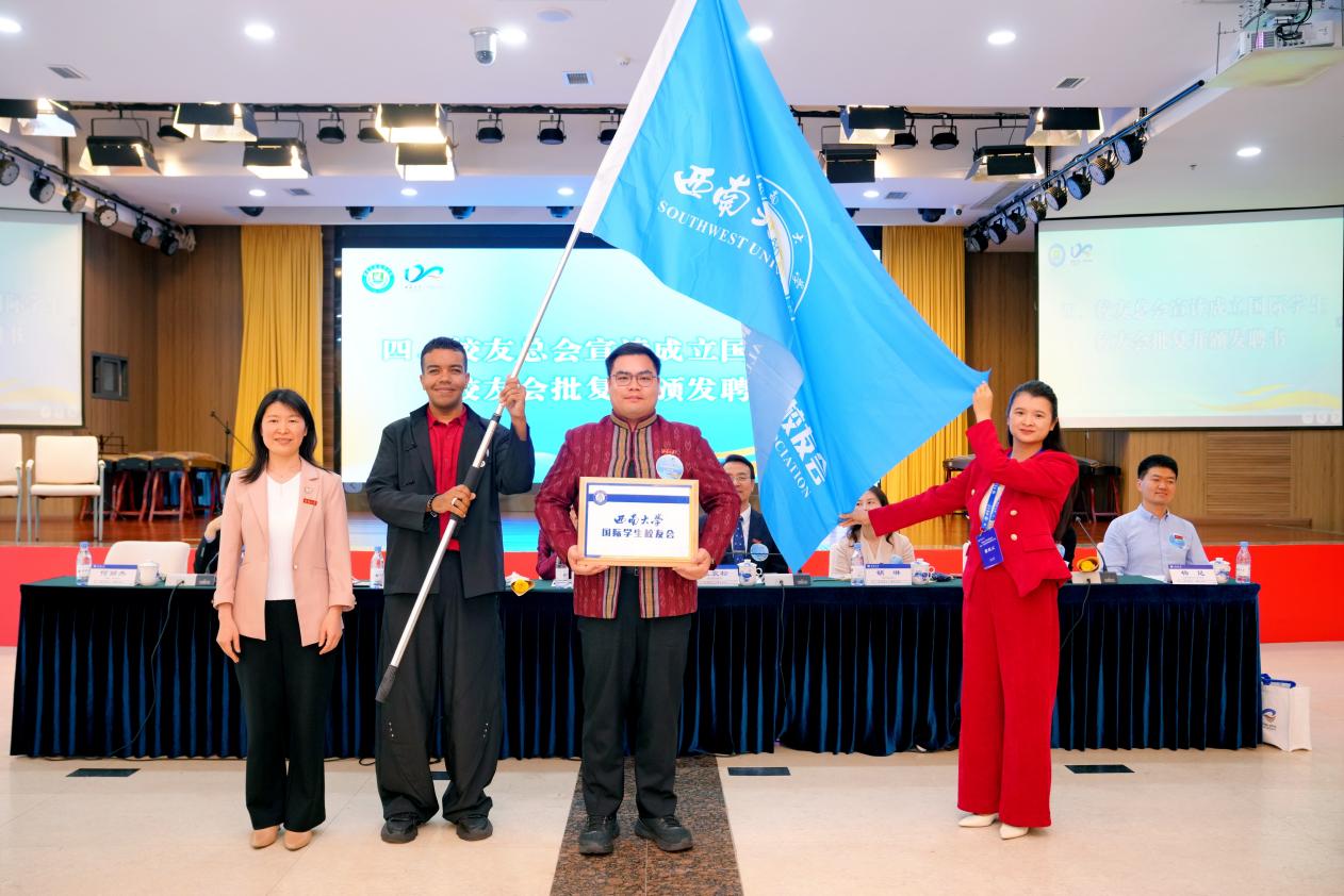 集团外联办副主任、员工总会副秘书长陈建英宣读《关于同意筹备成立122cc太阳成集团官网国际员工员工会的批复》,颁发会牌、会旗,并为首届员工会会长罗俊勇(泰国)、副会长黎氏云(越南)、秘书长黄阿里(埃及)颁发聘书。