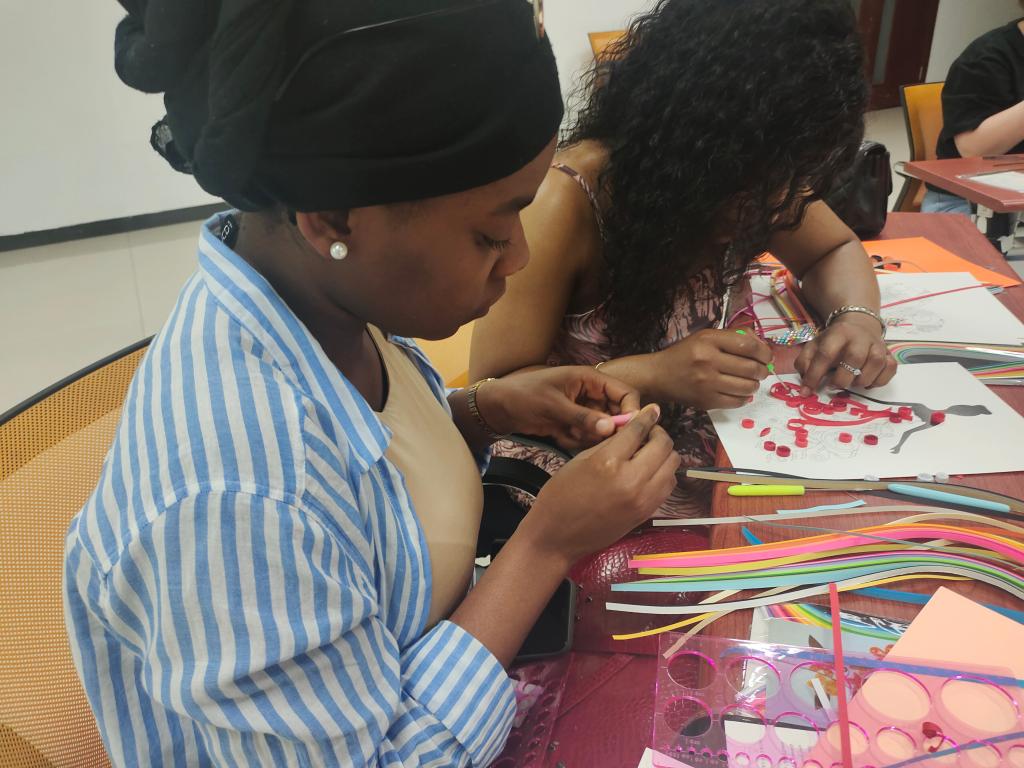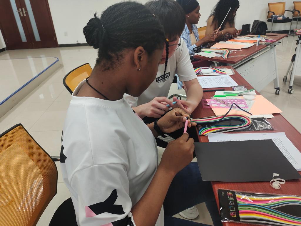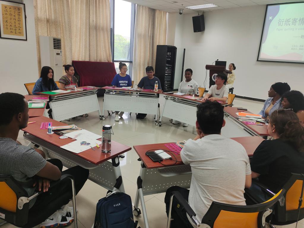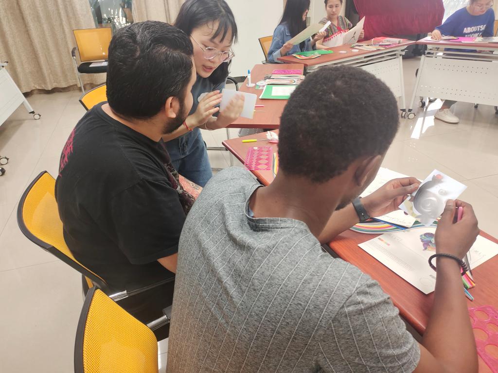 在欢快的音乐伴奏下,来自五湖四海的同学们纷纷拿起手中的工具,为今晚的搭档制作属于TA的独一无二的衍纸作品。色彩鲜艳的花束、可爱灵动的海豚、美丽动人的小女孩、真诚灿烂的笑脸……同学们充分发挥想象力,为同伴献上了独特的“初印象”。