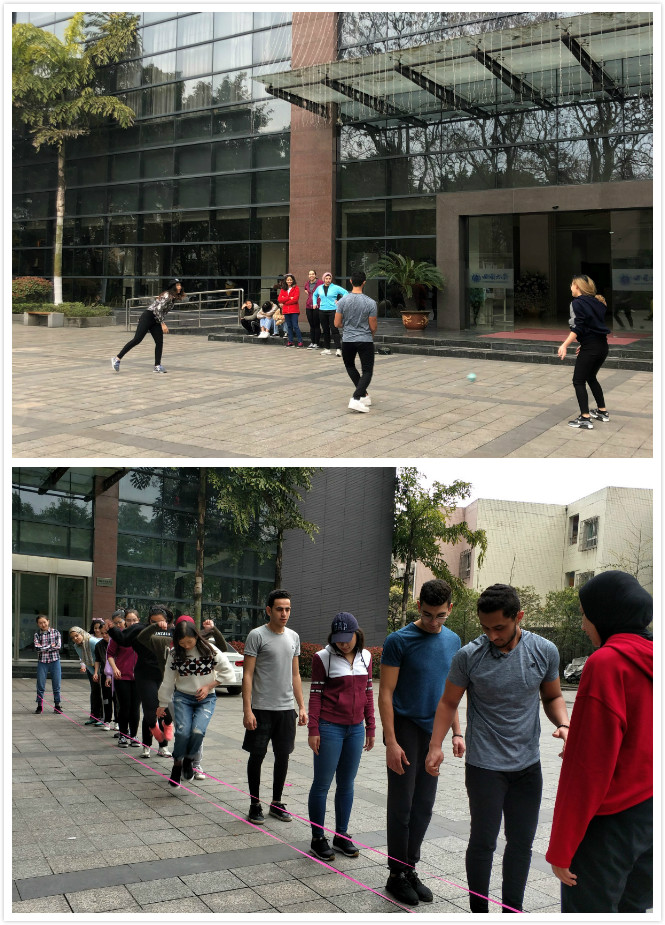 2019年3月16日下午一点,2018级泰国正大管理公司班和2018级埃及艾因夏姆斯大学班的共计34名员工,在吴宗燕老师和钟万平老师的带领下,在太阳成集团tyc122cc楼前集合,进行了一场以“了解和感受中国民间传统游戏”为主题的趣味运动会。