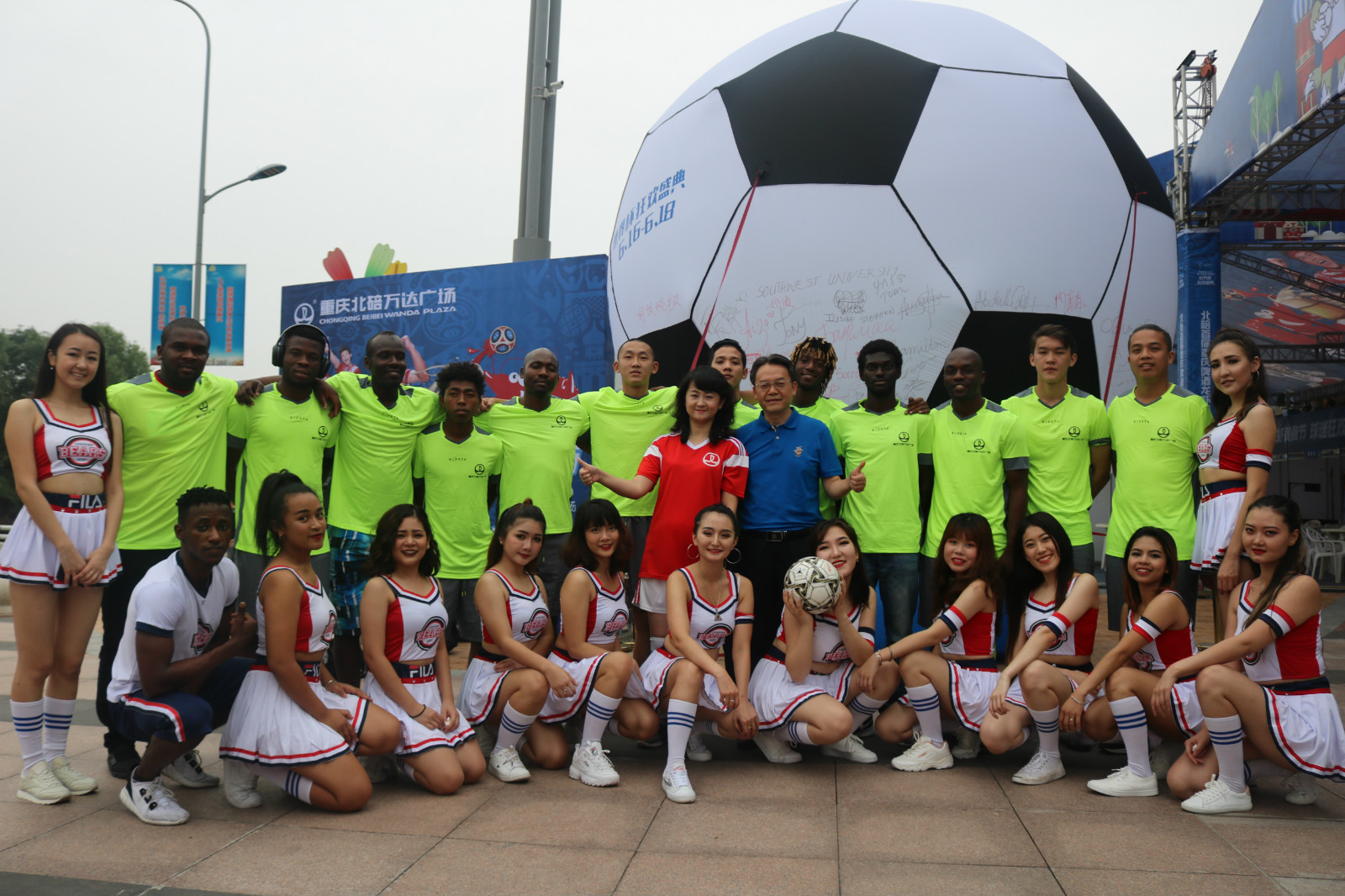 俄罗斯世界杯正在如火如荼进行之际,公司国际员工积极响应四年一届的激情赛事,与重庆劲浪球队对决,拉开“我们的世界杯——北碚万达广场首届5V5足球比赛”开幕式。此项活动由北碚区文化委主办,公司太阳成集团tyc122cc书记刘猛出席开幕式。