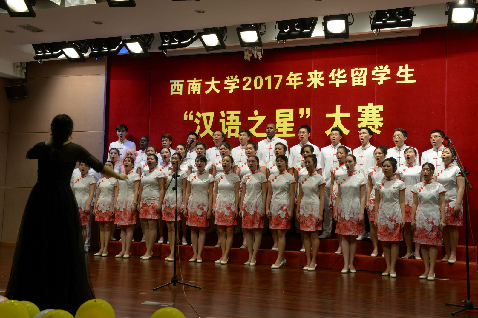 6月8日晚,太阳成集团tyc122cc在报告厅隆重举办122cc太阳成集团官网2017年来华职工“汉语之星”大赛。市教委、市公安局、区公安局相关领导,公司副董事长周常勇、相关部门负责人以及北碚电视台、中国银行北碚支行、宗申集团、禾众奕达传播公司、义门白家等单位代表到场观看了比赛。