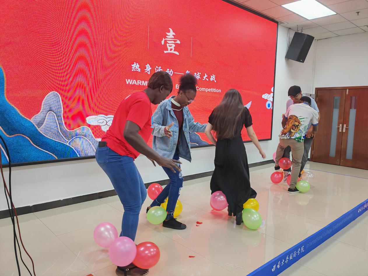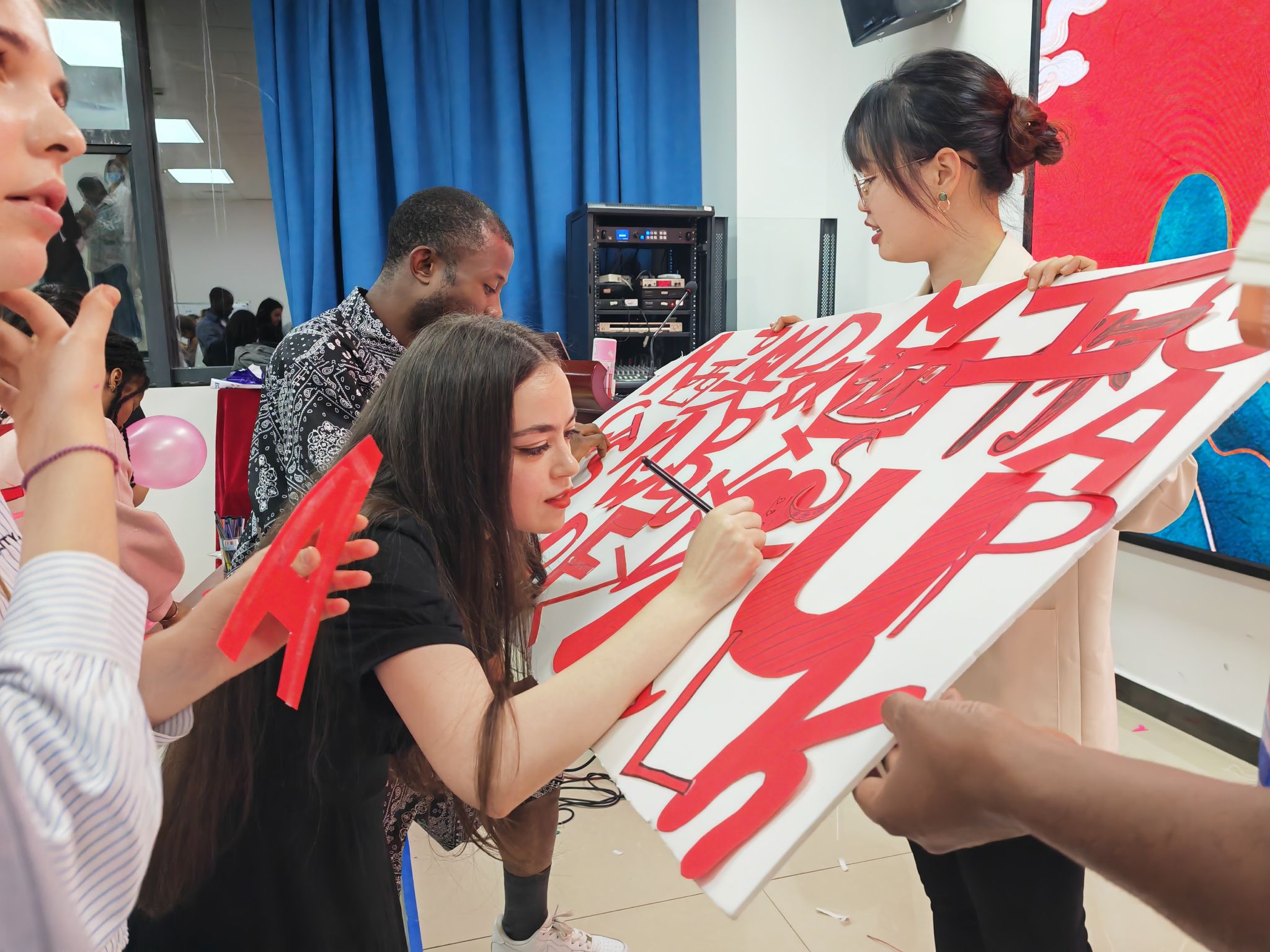 通过剪纸剪出自己姓名的首字母,完成后所有小组按照抽签分工共同剪出“西大欢迎你”,贴在纯色背景板上。将传统文化与活动相结合,在增进沟通的过程中也能够加深对中国传统文化的了解。