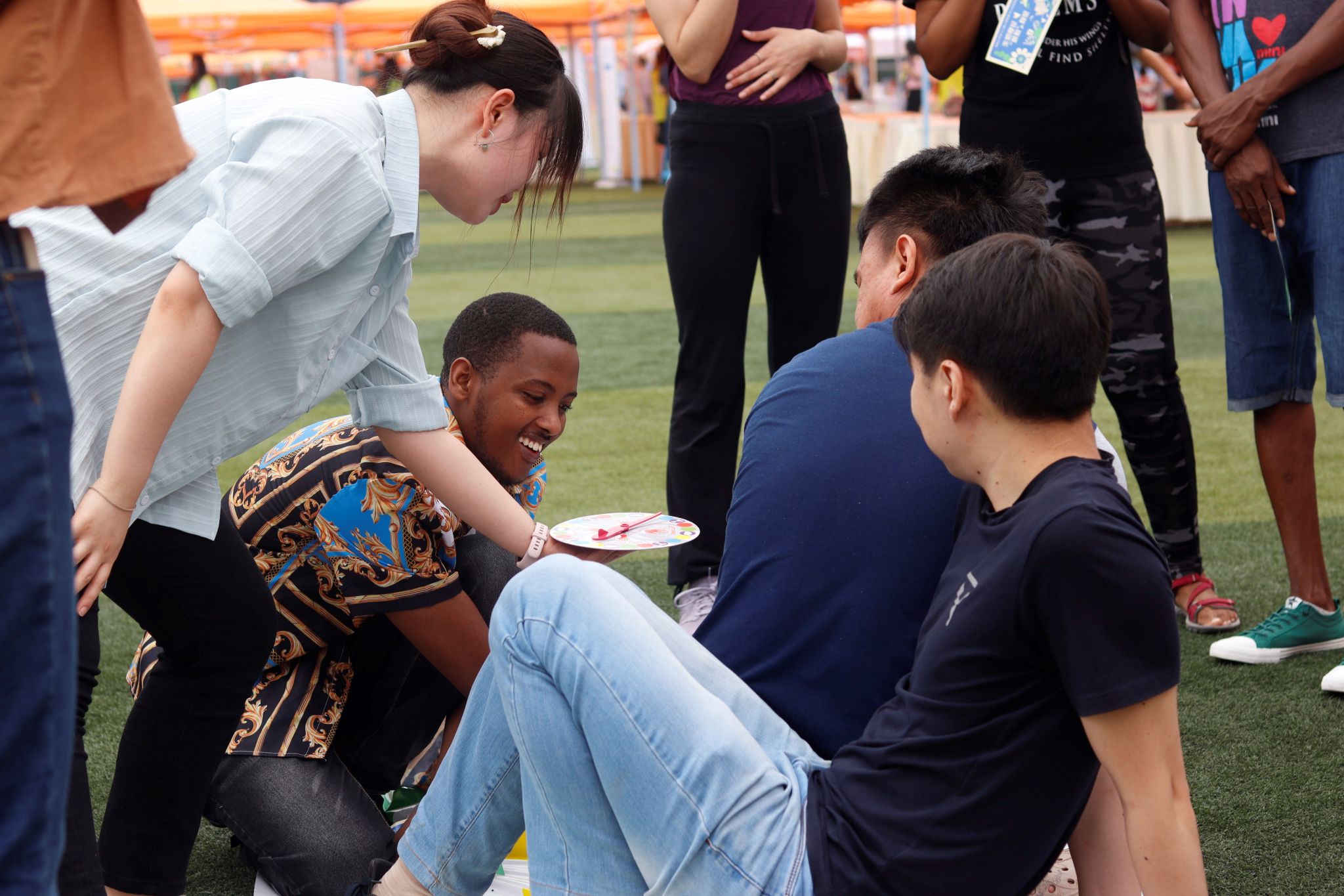 在“同住地球村”活动中,来自世界不同国家的职工们通过不同颜色的画笔不仅绘出了各具特色的盘子,也创造出属于自己的星球,肤色的不同也阻止不了我们的“星际”互动。