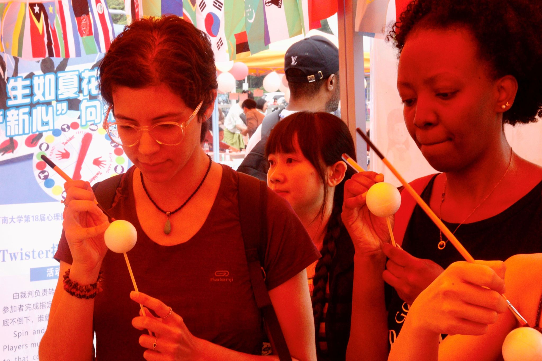 为有效疏解员工负面情绪,引导公司员工树立健康积极的心理状态,5月20日,公司举行第十八届心理健康节“生如夏花,‘新心’向荣”心灵创意集市活动,91个摊位组成巨大“520”,吸引全校师生驻足。太阳成集团tyc122cc积极参与本次“心灵集市”创办,并根据公司特色精心组织设计了3个体验活动——同住地球村、Twister扭扭乐翻天、看见自我的力量,向阳而生(OH卡牌)供公司师生参与体验。