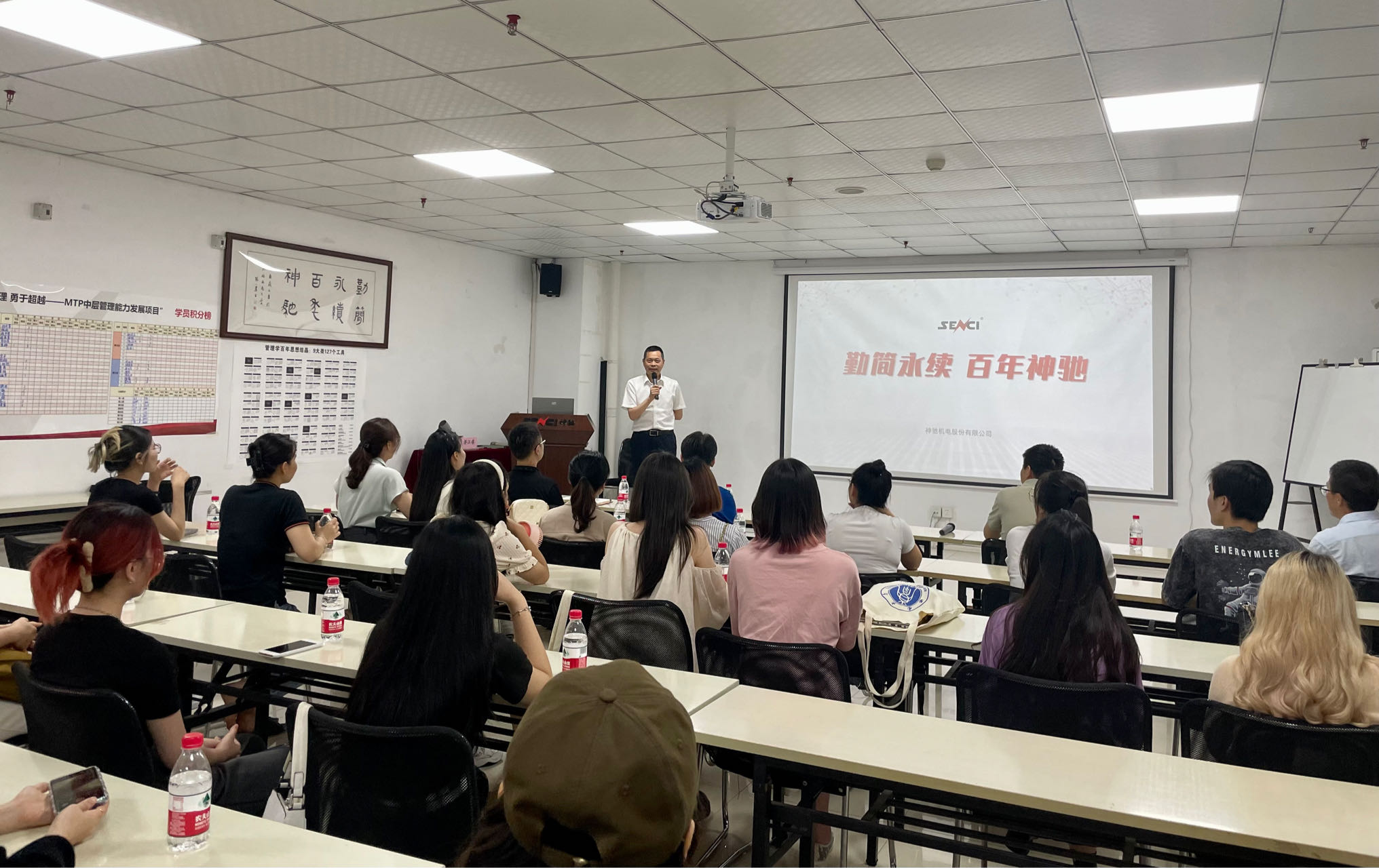 会前,神驰机电股份有限公司副总经理黄勇先生带领师生走访参观企业,并详细介绍企业发展历程、相关产品。神驰机电作为一家上市公司,集品牌营销、产品研发、智能制造为一体的全产业链企业,业务范围覆盖电机电控、储能电源、发电机组、园林机械等产品领域。