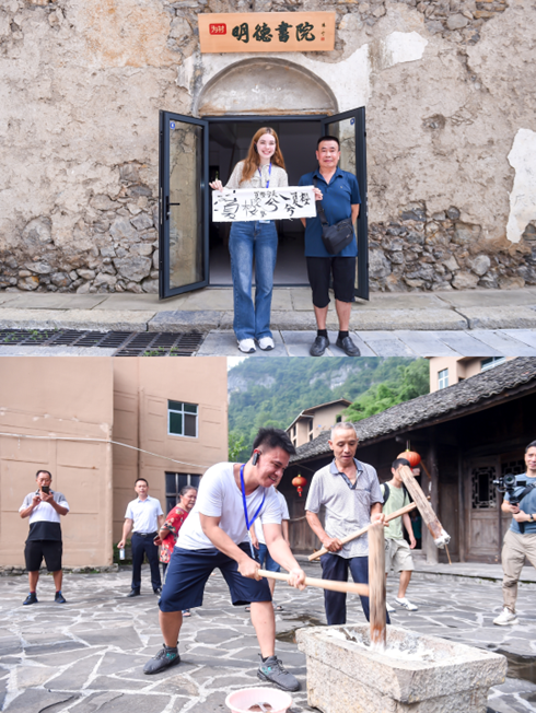 在崖高谷深、梯田交纵的何家岩村,他们深度体验苗绣制作、手工糍粑打制、民间书法创作,欢快地与身着民族服装的村民们载歌载舞。另外,他们还探访农家客房、高端民宿、农家咖啡厅、明德书院等乡村新业态,了解政府为他们量身定制的可持续共富乡建模式所带来的深刻影响。