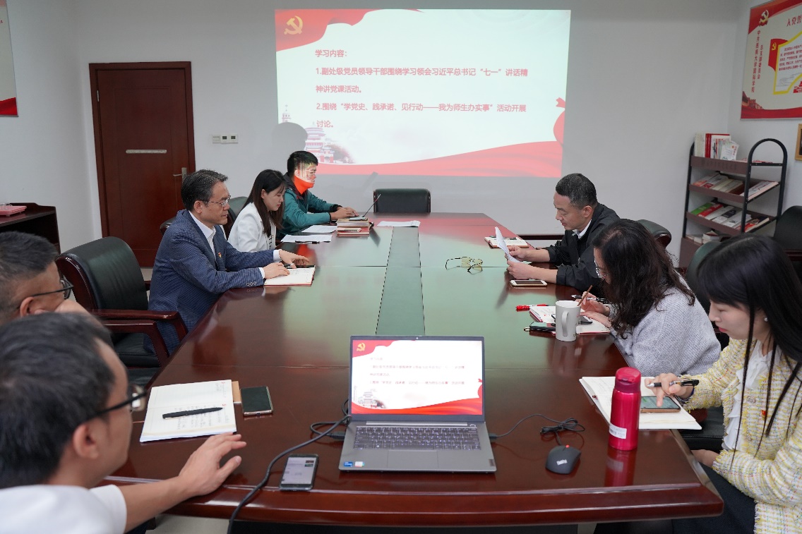 活动前,各支部围绕“学党史、践承诺、见行动——我为师生办实事”活动开展讨论,每名党员报告“我为师生办实事”的具体事项、完成进度、下一步安排等情况,党支部书记进行点评并推动具体事项落地落实。