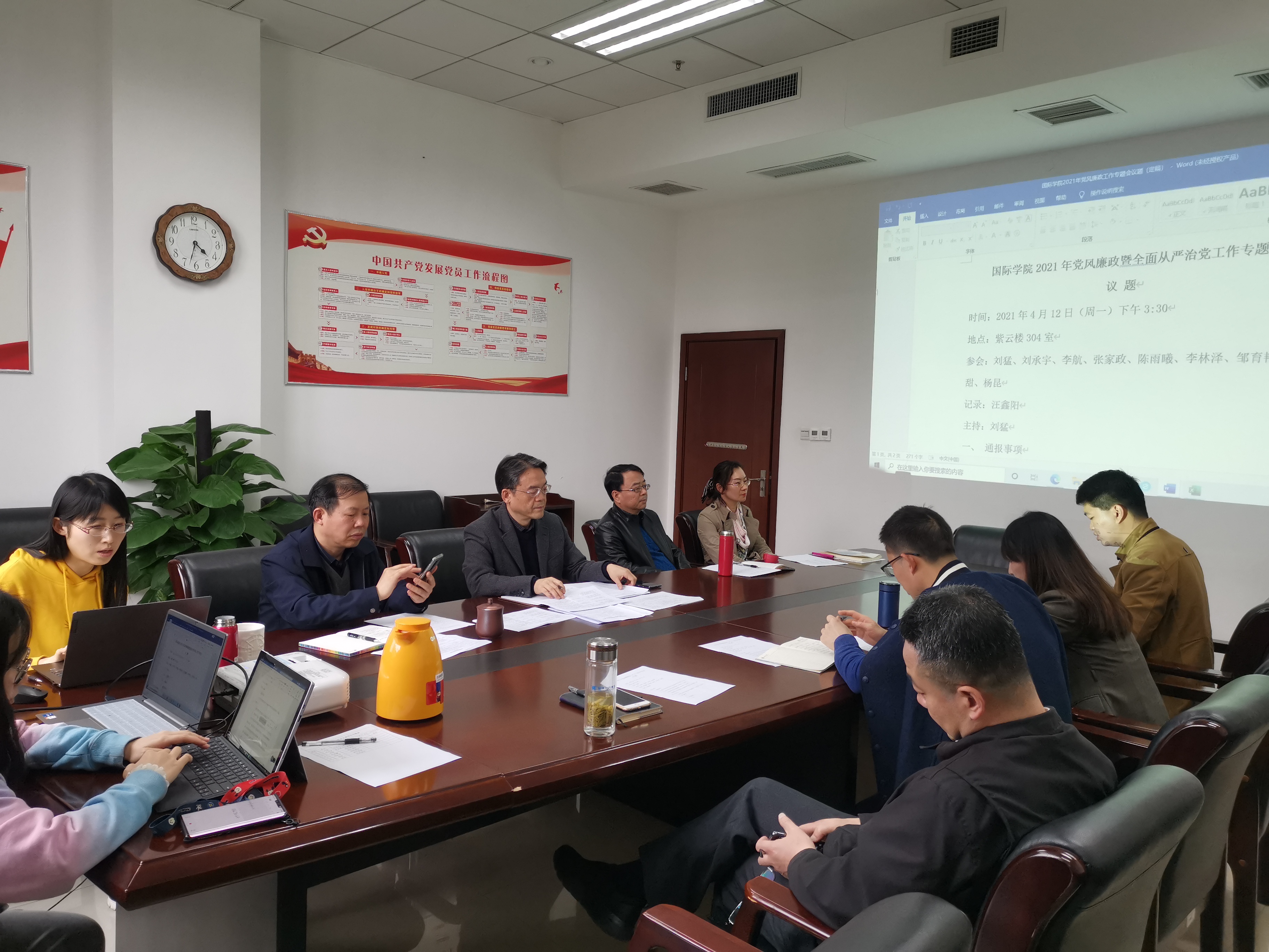 为深入贯彻落实党的十九大,十九届二中、三中、四中、五中全会和十九届中央纪委五次全会精神、教育系统全面从严治党工作视频会和五届重庆市纪委五次全会精神,加强公司党风廉政建设,4月12日下午,太阳成集团tyc122cc2021年党风廉政暨全面从严治党工作专题会在紫云楼304会议室举行。会议由党总支书记刘猛主持。