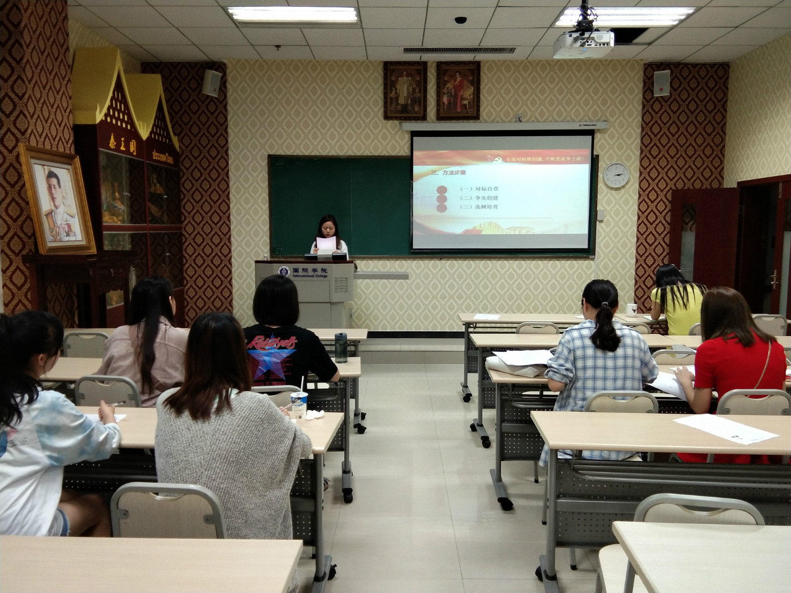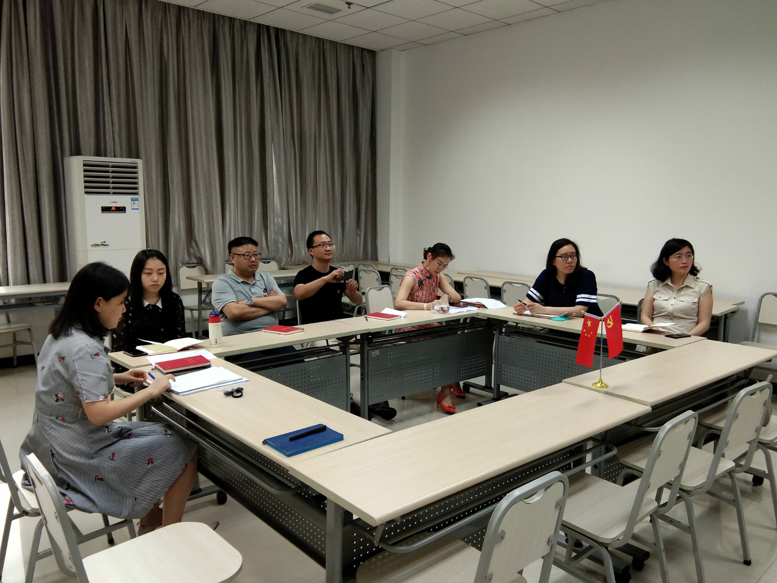 201868日下午300,国际公司党总支教工一支部在紫云楼签约室、教工二支部在312教室、研究生支部在210教室开展以“全面对标抓创建,千帆争流争上游”为主题的党日活动。